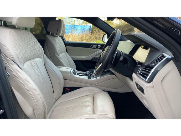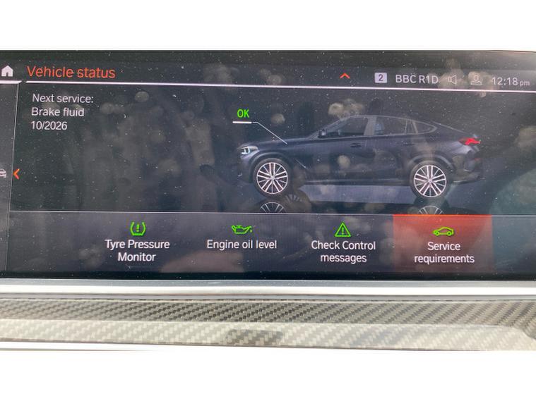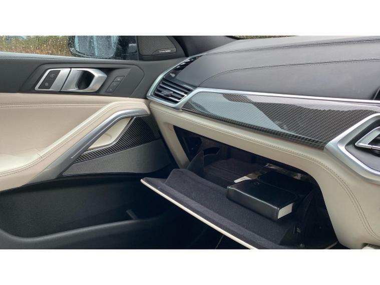 Step inside to discover a truly premium environment, highlighted by a full Ivory White interior that creates a bright, luxurious atmosphere. The cabin is further elevated by carbon fibre interior trim, reinforcing the X6s sporty DNA while maintaining a refined finish. Comfort is assured for all occupants thanks to four-zone automatic air conditioning, allowing individual climate control throughout the vehicleideal for family trips or business travel.
