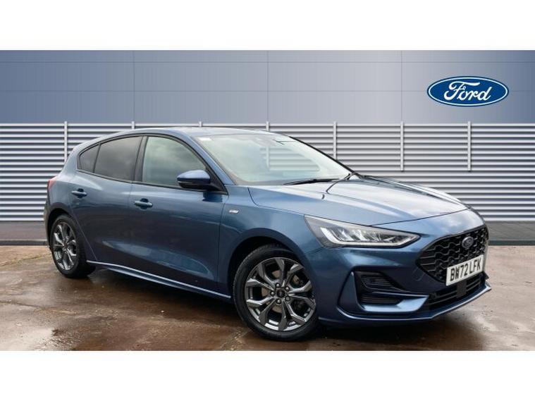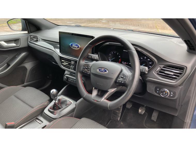 Ford Focus 1.0 EcoBoost ST-Line 5dr Petrol Hatchback, , This Ford Focus 5dr delivers sporty performance, sharp handling, and modern style in a practical package. Its 1.0-litre EcoBoost turbocharged engine produces 125PS, giving it punchy responsiveness with efficient fuel consumption. The ST-Line trim features a sport-tuned suspension, alloy wheels, bodykit styling, and a distinct rear spoiler. Inside this has with part-leather and red stitching as well as a flat-bottom steering wheel. The infotainment system includes an Ford SYNC touchscreen with Apple CarPlay and Android Auto, and there's advanced safety tech such as lane-keeping assist and pre-collision warning. Stylish, fun to drive, and well equipped this Focus ST-Line is a top pick for performance-minded hatchback buyers. All our vehicles at Vertu Motors come fully prepared with our peace of mind Main Dealer guarantee. Every vehicle is fully prepared both mechanically and cosmetically up to the highest standard which includes having any tyre replaced that has less than 3mm tread depth. Every vehicle will have a minimum of 7 months MOT remaining and you will not have to service the vehicle for at least 6 months or 6000 miles. We ensure that you will have a minimum of 2 keys and to give you even further reassurance we also supply you with a 3 months complimentary warranty and a 14-day money back guarantee. Our vehicles also come with a full HPI vehicle check assuring you that your new vehicle will have no registered accident claims reported, or any outstanding finance, it also shows the vehicle has not been imported. We also do a full Government VOSA report check to verify the mileage on all cars over 3 years old. This service comes free of charge to all our customers unlike other main dealers who charge you an admin fee for this service. We also offer nationwide delivery on all our vehicles, call today to arrange a viewing / test drive and let one of our professional sales executives give you the Vertu experience **DUE TO HIGH STOCK TURNOVER WE RECOMMEND RESERVING THE CAR TO AVOID DISAPOINTMENT**