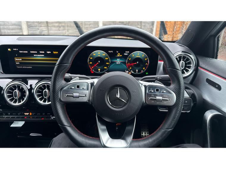 Mercedes-Benz A-Class A200 AMG Line Premium 5dr Auto Petrol Hatchback, , The 2020 Mercedes-Benz A-Class A200 AMG Line Premium 5dr Auto delivers a premium hatchback experience that combines expressive styling, solid performance and advanced technology. Powered by a 1.3-litre turbocharged petrol engine producing around 163 bhp with smooth automatic transmission, it accelerates briskly reaching 0-62 mph in roughly 8 seconds while offering a refined and composed drive that suits both city commuting and longer journeys. The AMG Line Premium specification enhances the cars visual appeal with sporty AMG-inspired design elements, including distinctive alloy wheels and aerodynamic body styling, while the well-appointed interior showcases the latest MBUX infotainment system with crisp touchscreen, smartphone integration and a suite of connectivity features that elevate everyday usability