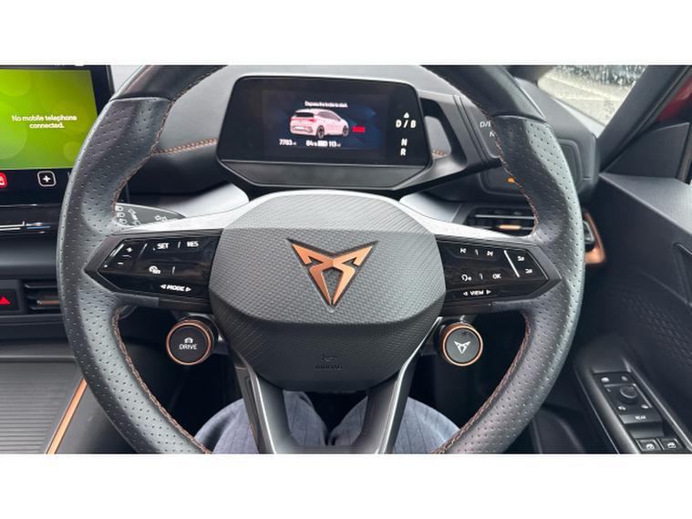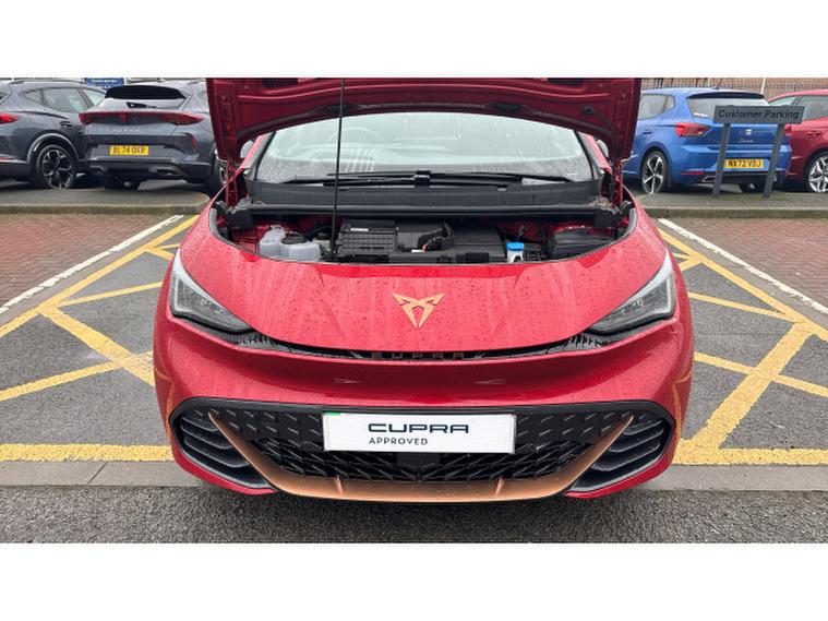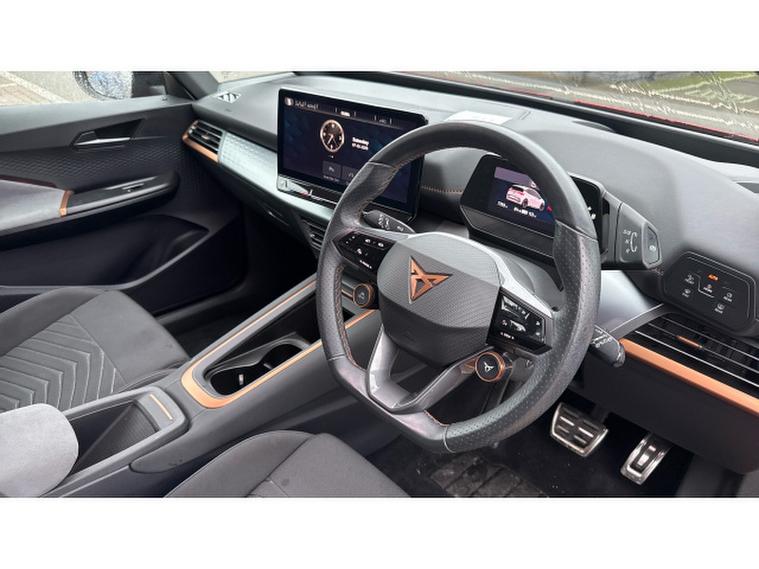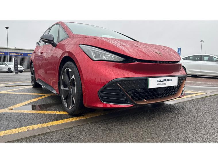 CUPRA Born 169kW e-Boost V2 58kWh 5dr Auto Electric Hatchback, , This 2024 CUPRA Born e-Boost V2 presents an exceptional opportunity with its remarkably low mileage of just 7767 miles, a testament to its single owner. As a CUPRA manufacturer approved electric vehicle, this Born V2 model offers a compelling blend of performance and practicality. It features a 62 kWh battery providing a maximum range of 262 miles, with a full home charging time of 9 hours 30 minutes using a 7kW charger, and a rapid 37 minutes for a 0-80% charge at a public station. Inside, you'll find a heated leather wrapped multifunction steering wheel with satellite buttons, heated front seats, and a keyless go central locking system with keyless entry for ultimate convenience. The full LED headlights with welcome home and adverse weather functions ensure excellent visibility, while the Pilot M system includes adaptive cruise control and rear camera parking assistance.