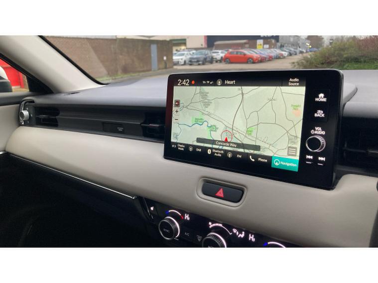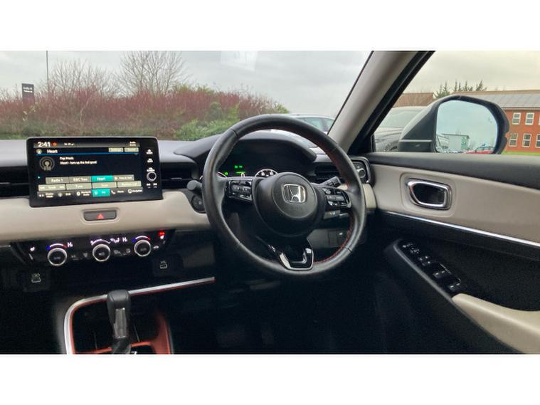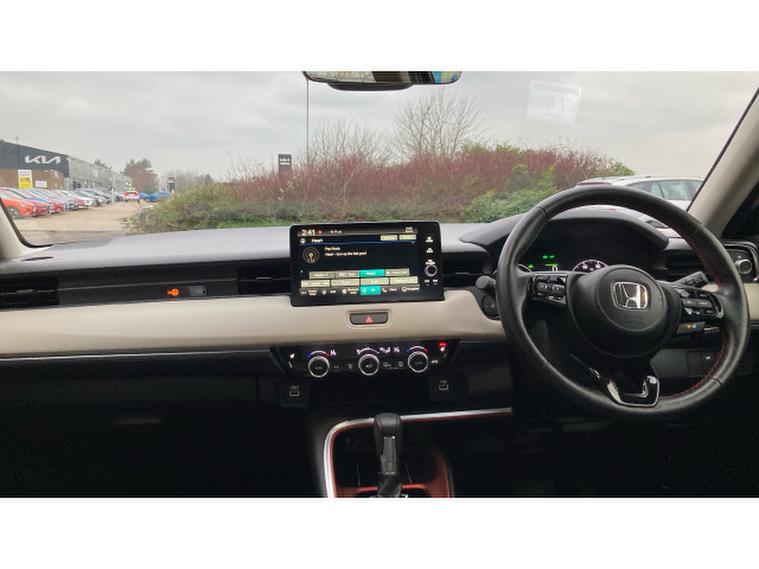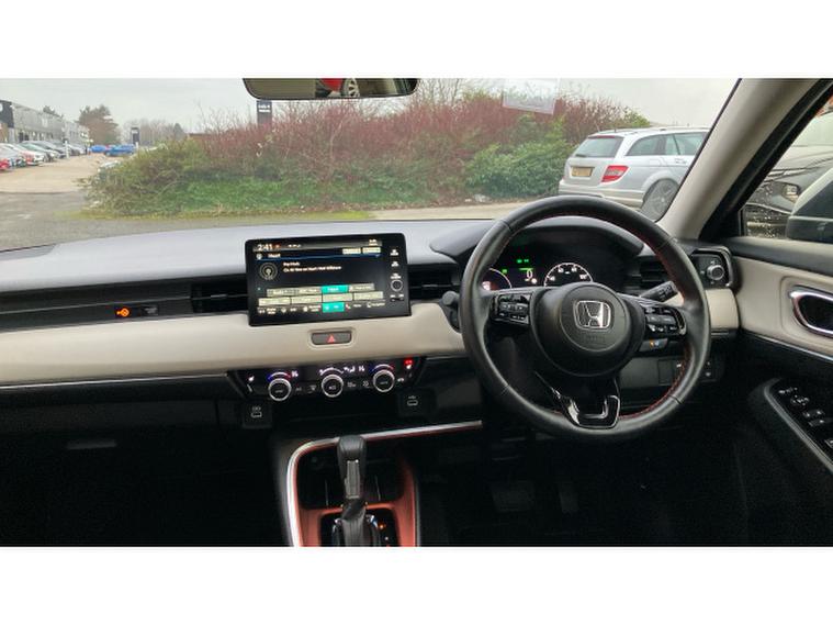 Underneath the bonnet lies Hondas intelligent 1.5-litre e:HEV hybrid powertrain, which seamlessly blends petrol and electric power to deliver smooth, responsive performance with impressive fuel economy and low emissions. The continuously variable transmission (CVT) enhances refinement, providing effortless acceleration and a calm, composed ride whether youre navigating city streets or cruising on the motorway. The hybrid systems ability to switch between electric-only and combined driving modes adds to the HR-Vs efficiency and quiet, comfortable experience.
