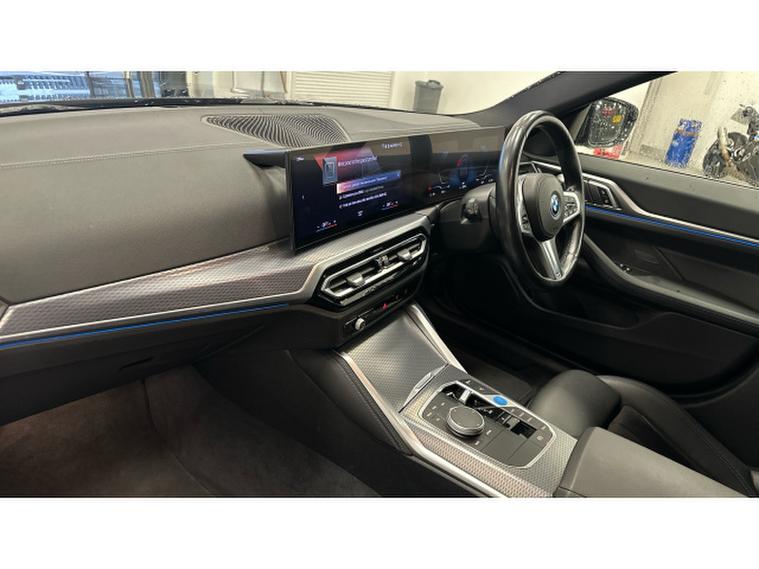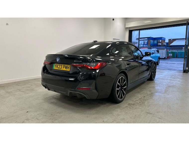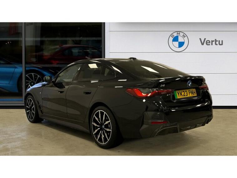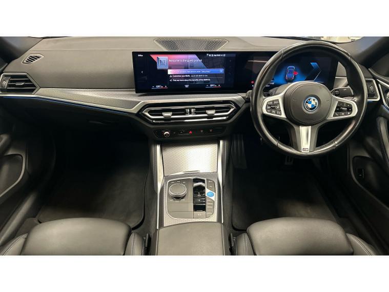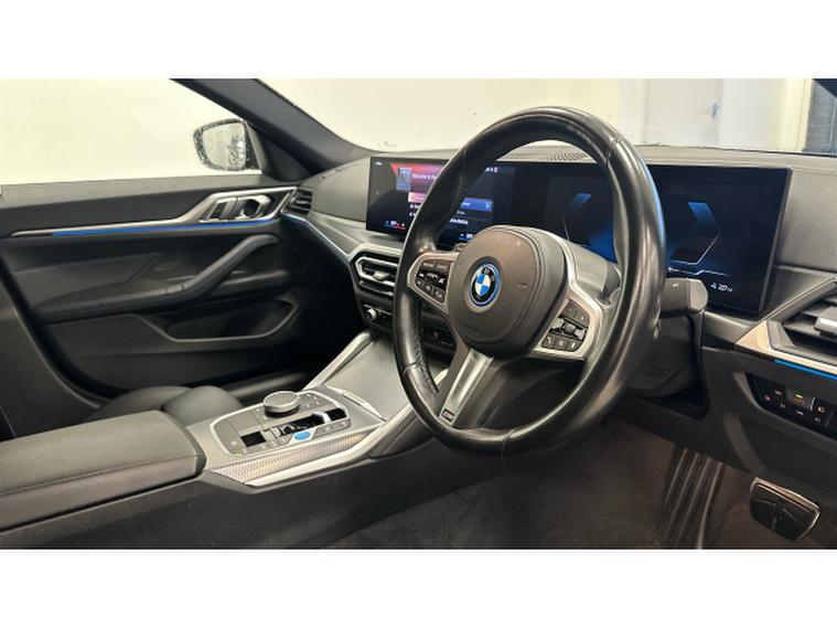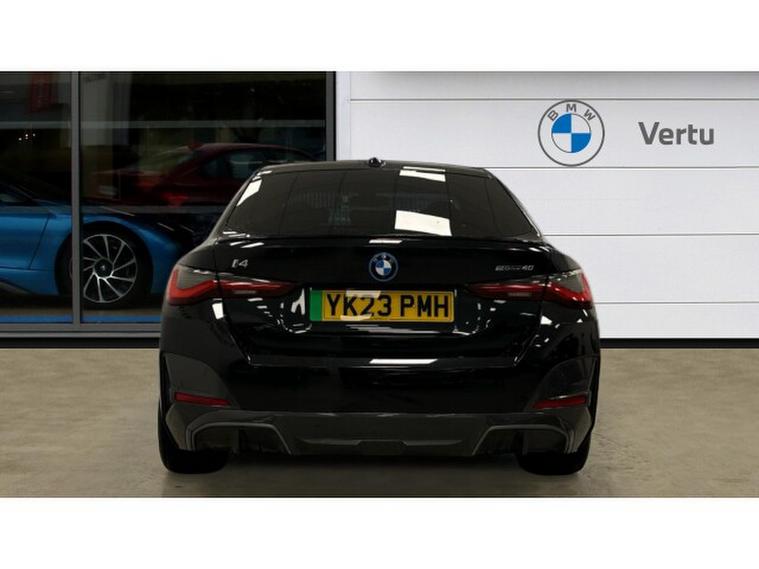 BMW i4 250kW eDrive40 M Sport 83.9kWh 5dr Auto Electric Hatchback, , Experience cutting-edge electric performance combined with BMW luxury in this G26 BMW i4 eDrive40 Sport LCI, finished in elegant Black Sapphire Metallic with Alcantara/Sensatec Black upholstery featuring striking Blue stitching. Registered in 2023 and having covered 20, 056 miles, this all-electric Gran Coup delivers smooth, refined power alongside exceptional comfort, efficiency and unmistakable BMW style.
