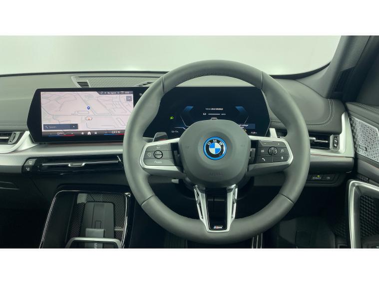 BMW iX1 150kW eDrive20 Shadow Edition 65kWh 5dr Auto Electric Estate, , This 2025 BMW iX1 20 Shadow Edition is a superb example, having had only one owner since new. As a fully electric vehicle, it offers a smooth and quiet driving experience, powered by a 67 kWh battery that provides a maximum range of up to 278 miles. Charging is convenient, with a full charge taking approximately 10 hours at home using a 7kW charger, and for longer journeys, it can reach 80% charge in just 33 minutes at a rapid public charging station. This Shadow Edition trim also includes a heated steering wheel for added comfort and the Parking Assistant, which features a rear camera and rear sensors to make manoeuvring easier.