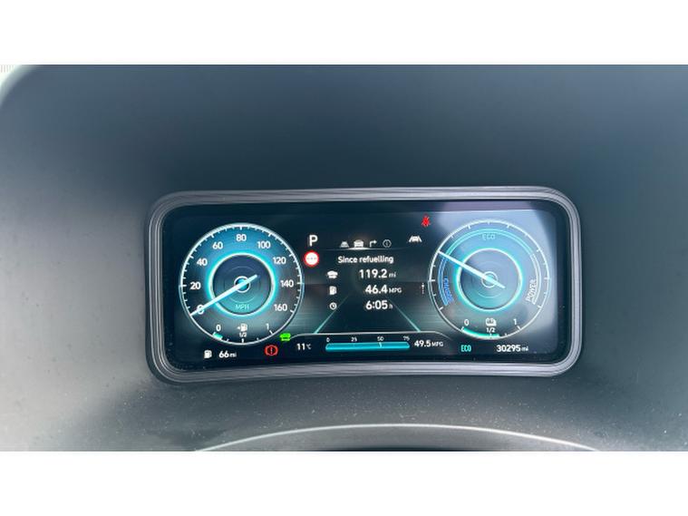 Powered by the 1.6-litre GDi petrol engine with hybrid technology, paired with a smooth DCT automatic transmission, the Kona delivers responsive, efficient driving with low running costs. The hybrid system provides excellent fuel economy while retaining a quiet, refined ride.