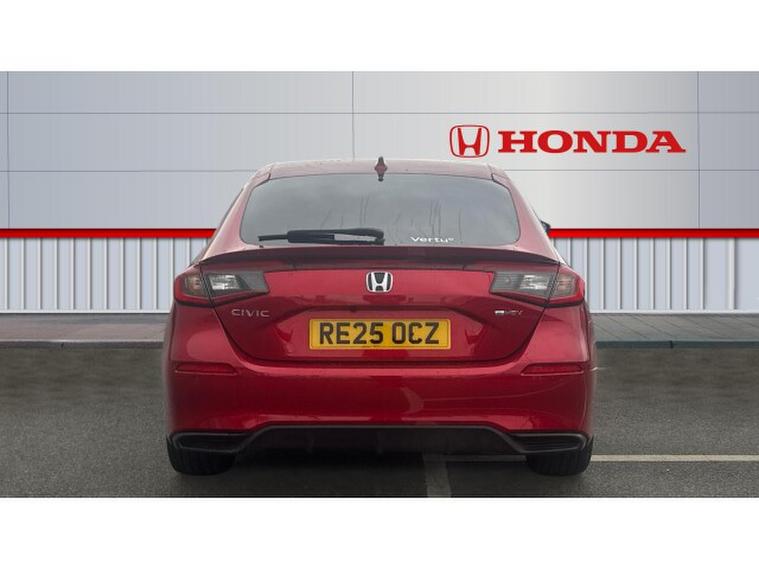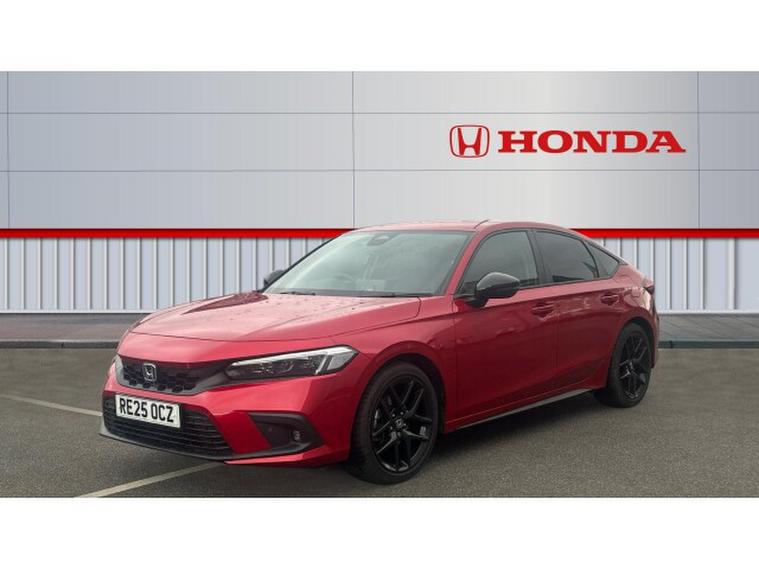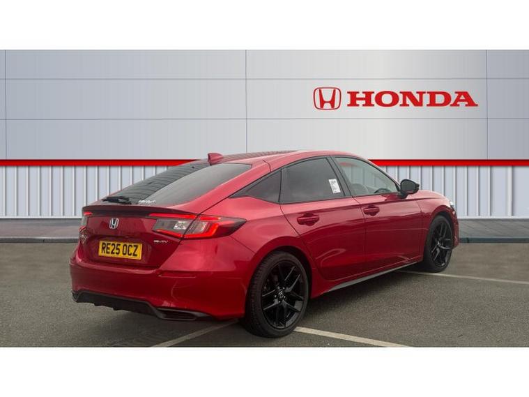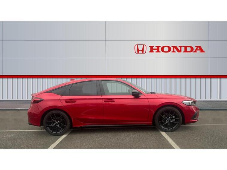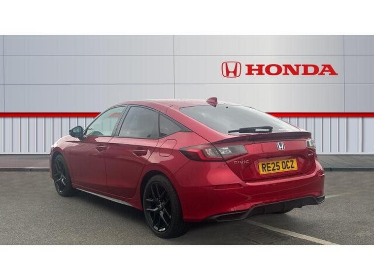 Honda Civic 2.0 eHEV Sport 5dr CVT Hybrid Hatchback, , The 2025 Honda Civic Hatchback 2.0 eHEV Sport in striking red is a perfect fusion of modern design, efficiency and engaging performance. The bold red finish enhances the Civics sleek, aerodynamic shape, giving it a confident road presence that feels both sporty and refined. Sharp LED headlights, sculpted body lines and black alloy wheels add to its dynamic character, making it instantly recognisable and effortlessly stylish.