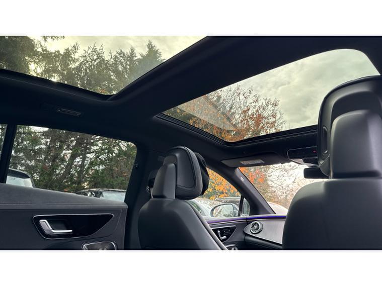 Inside, the EQE is a masterclass in technology and comfort. Black climatised seats with full memory functions ensure first class comfort in all conditions, while the panoramic sliding sunroof fills the cabin with light and space. The MBUX Augmented Reality Satellite Navigation combines live road visuals with intuitive guidance, complemented by a Head Up Display that keeps vital information directly in your eyeline. The Burmester 3D surround sound system delivers rich immersive audio, turning every journey into an event.