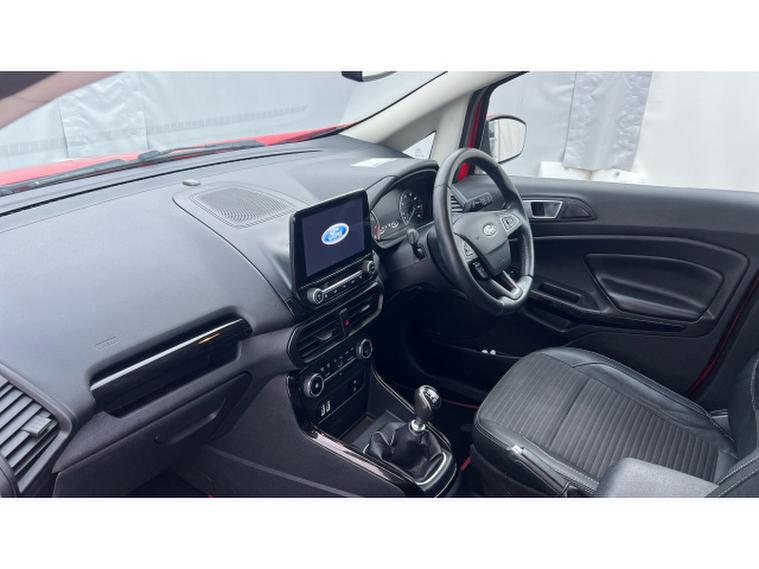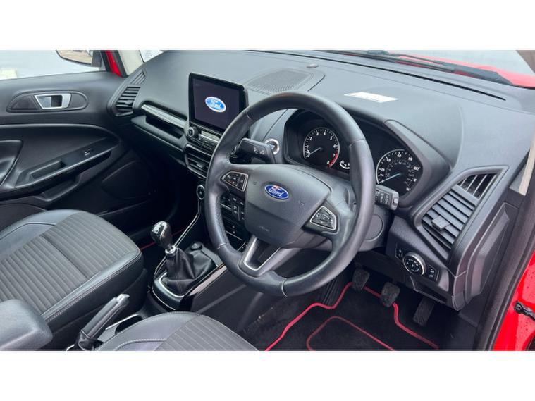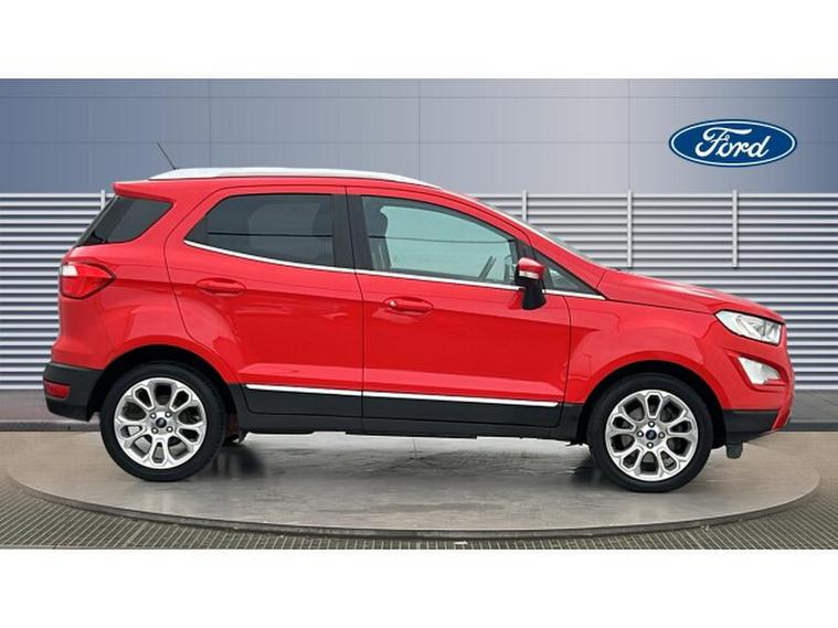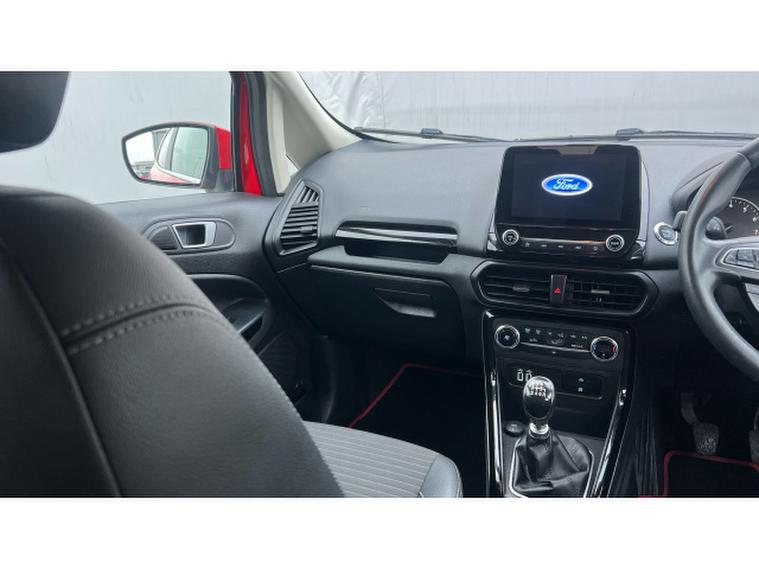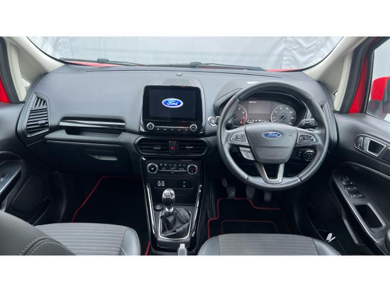 Ford EcoSport 1.0 EcoBoost 125 Titanium 5dr Petrol Hatchback, , Gloucester Ford have this 2 owner from new Ford Ecosport 1.0 EcoBoost 125 Titanium finished in Race Red. This Ford EcoSport Titanium in Race Red is a superbly engaging compact SUV that brings together style, technology, and everyday practicality in a fun and capable package. Its vibrant Race Red finish gives it a bold and confident presence on the road, turning heads wherever it goes. The EcoSports dynamic design, with its compact proportions and eye-catching details, perfectly suits both urban streets and weekend adventures. The 1.0 EcoBoost 125 engine delivers an excellent balance of spirited performance and efficient driving. This turbocharged powertrain provides lively acceleration and responsive handling, making the EcoSport enjoyable to drive in all conditions. Whether navigating busy city traffic or cruising on longer journeys, the engines smooth performance and economical fuel usage make every drive satisfying. Inside, the Titanium trim ensures a high level of comfort and refinement. The cabin feels inviting and well-built, with quality materials and an ergonomic layout that enhances the driving experience. The SYNC 3 infotainment system is intuitive and a pleasure to use, offering seamless connectivity for your smartphone and media. The integrated sat nav keeps you confidently on course, with clear, easy-to-read directions that make every route simple to follow. Parking and manoeuvring are effortless thanks to the combination of rear sensors and a rear camera, which together provide excellent visibility and awareness in tight spaces. These features offer additional peace of mind, especially in busy urban environments where precision is key. Overall, the Ford EcoSport 1.0 EcoBoost 125 Titanium in Race Red is a brilliantly balanced compact SUV. It delivers engaging performance, advanced technology, practical safety features, and a stylish design that make it an ideal choice for drivers who want versatility without compromise.