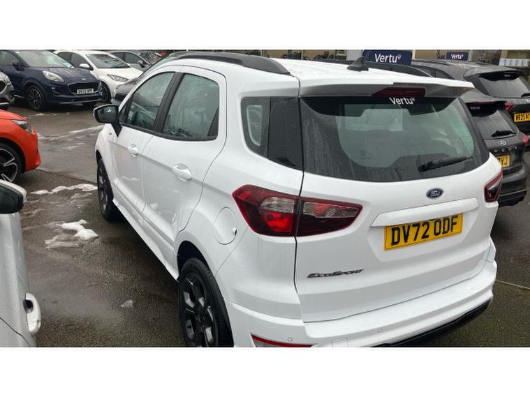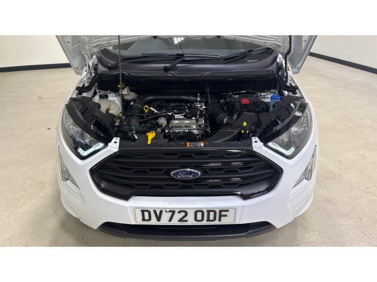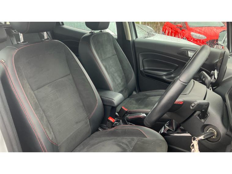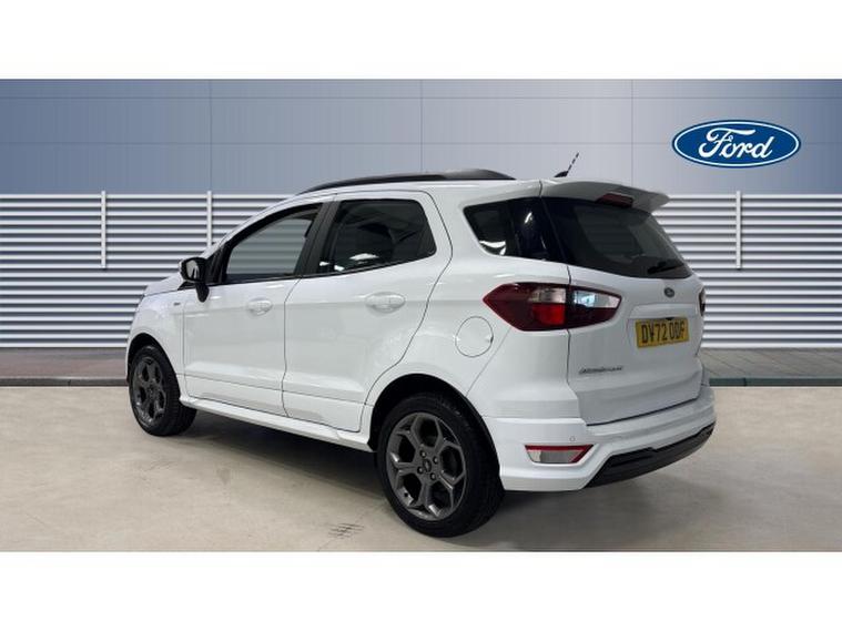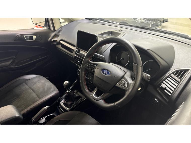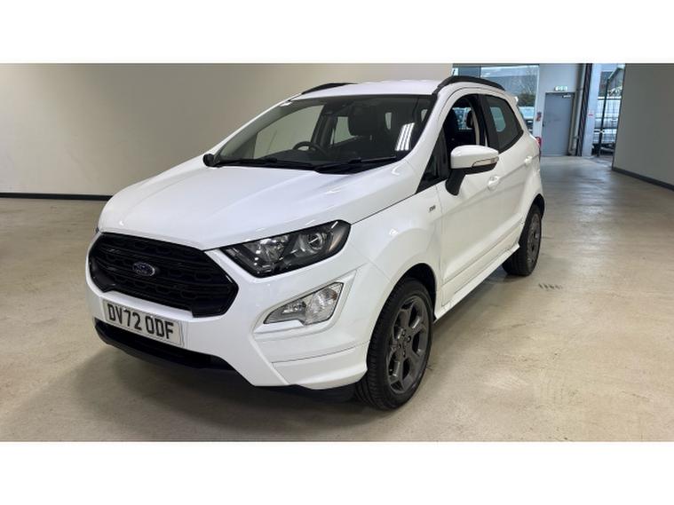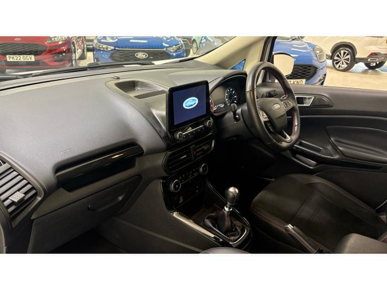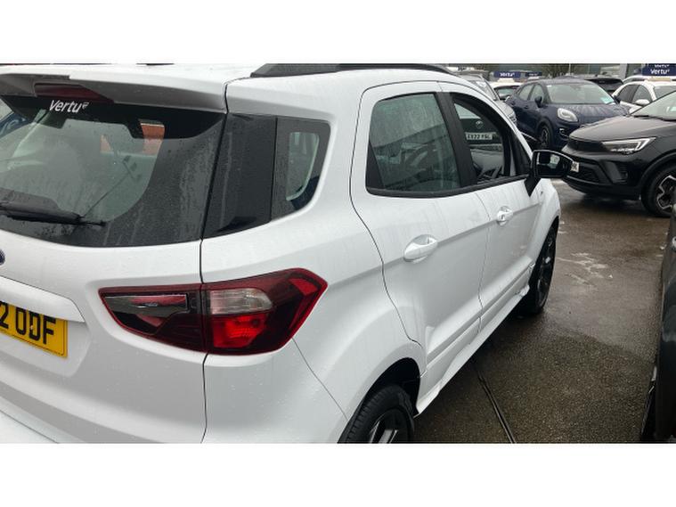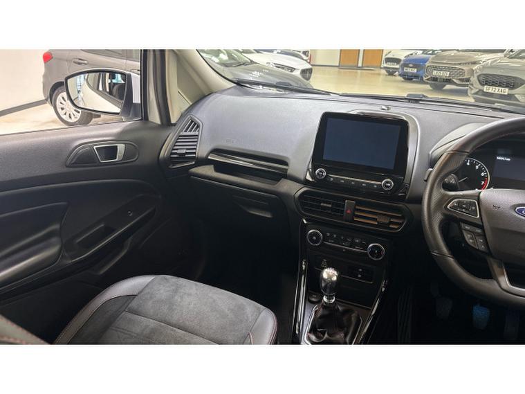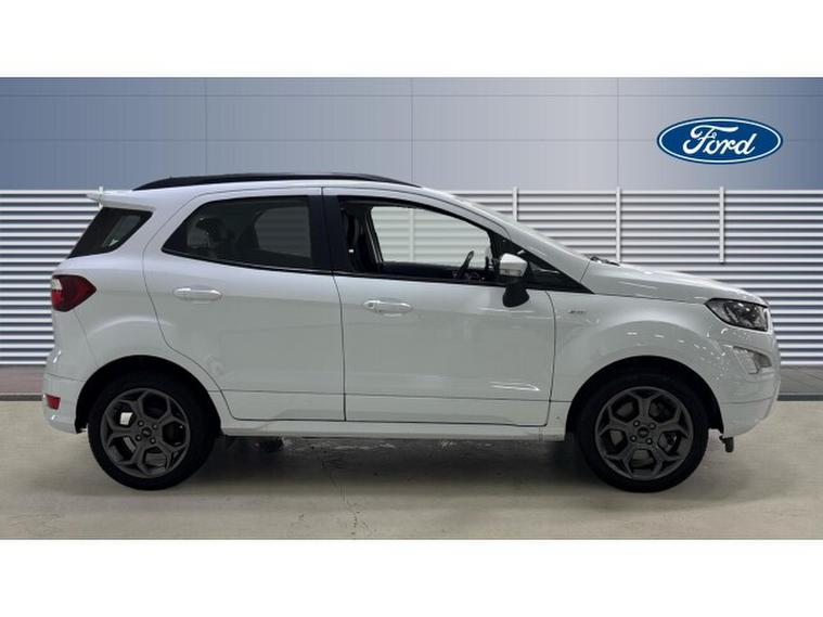 Ford EcoSport 1.0 EcoBoost 125 ST-Line 5dr Petrol Hatchback, , Gloucester Ford have this 1 owner from new Ford Ecosport 1.0 EcoBoost 125 ST-Line finished in Frozen white. This compact sporty and practical EcoSport 1.0 EcoBoost 125 ST-Line blends sporty ST-Line styling with the efficiency of Ford's EcoBoost engine. Perfect for city driving daily commutes or weekend adventures this compact SUV offers a fun-to-drive experience with modern technology and practicality. With its high driving position giving outstanding visibility the EcoSport lets you see more of what's going on around you. Add to that increased ground clearance and you can make easy work of potholes and puddles. Within the EcoSport's quiet and sophisticated interior lies an array of technologies all of which are easy to control. As well as this you will see that the dramatic design with luxurious surfaces enhances the feeling of space.