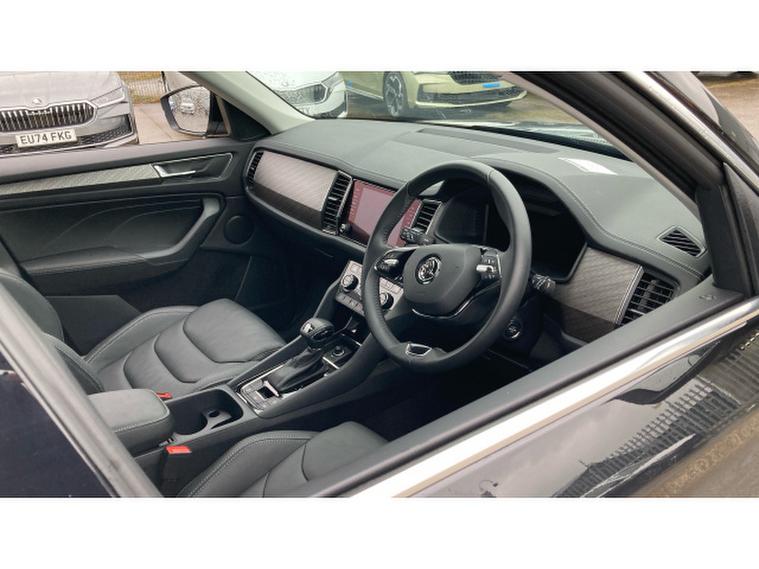 Skoda Kodiaq 1.5 TSI SE L Executive 5dr DSG [7 Seat] Petrol Estate, , Imposing, luxurious and exceptionally versatile this Skoda Kodiaq Estate 1.5 TSI SE L Executive DSG 7 Seat, finished in deep Black with just 7, 011 miles, is a superb example of a nearly-new flagship family SUV. Combining seven-seat practicality with premium technology and effortless performance, this Kodiaq delivers on every front.