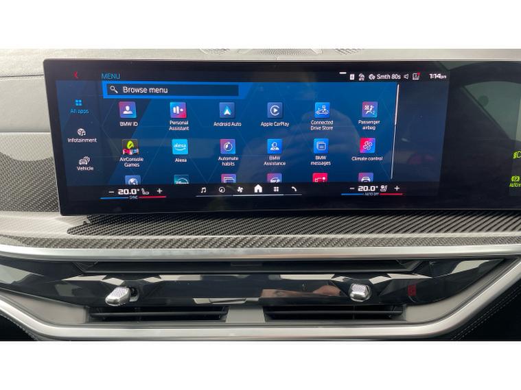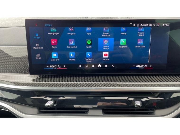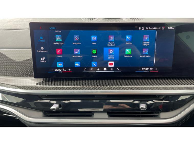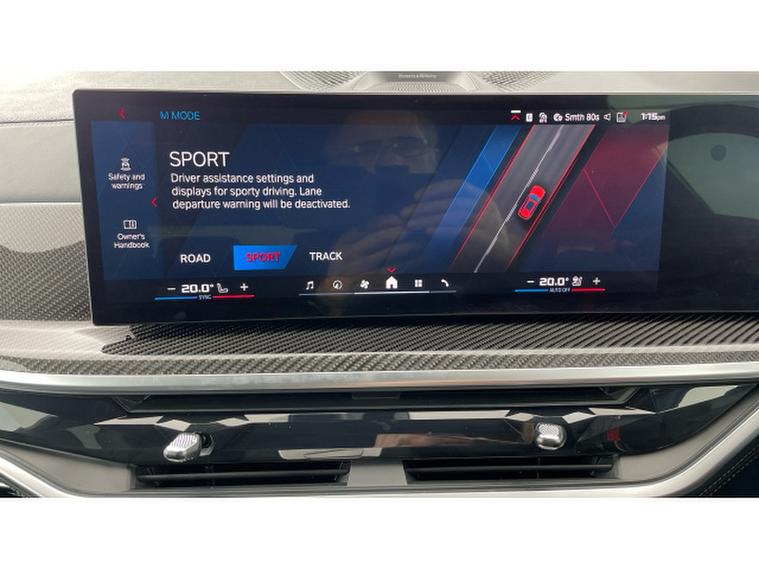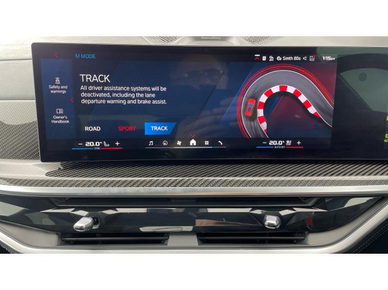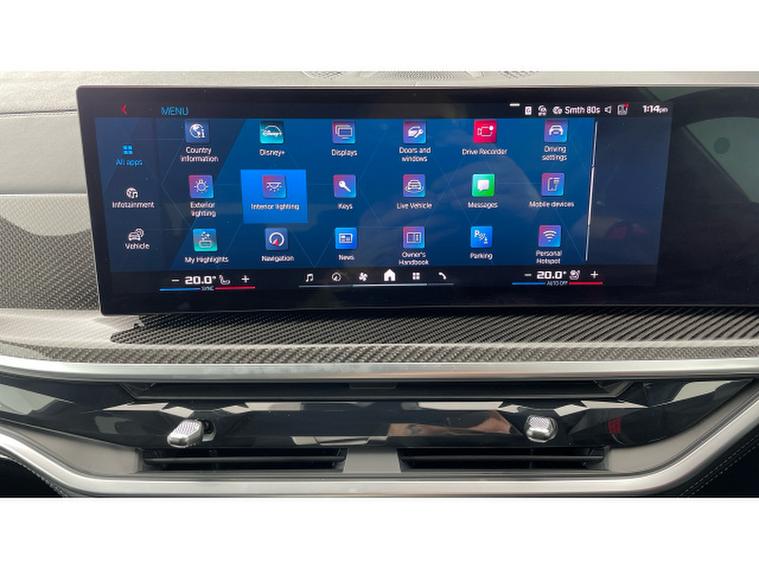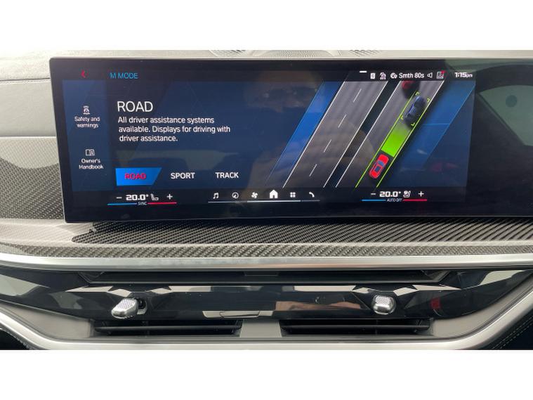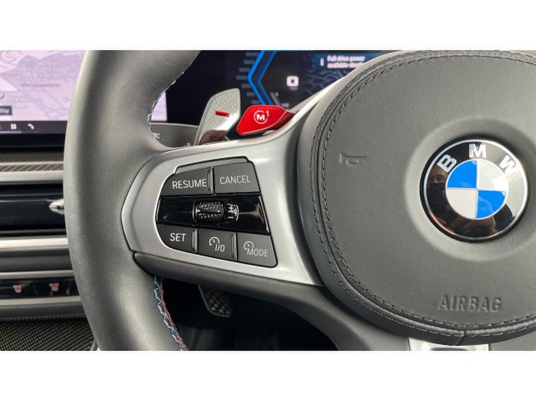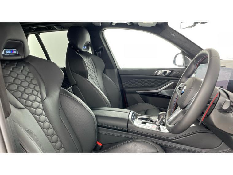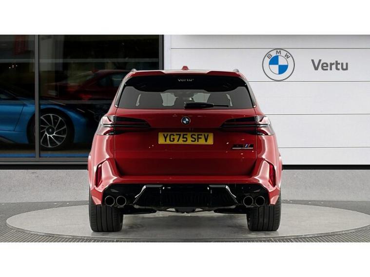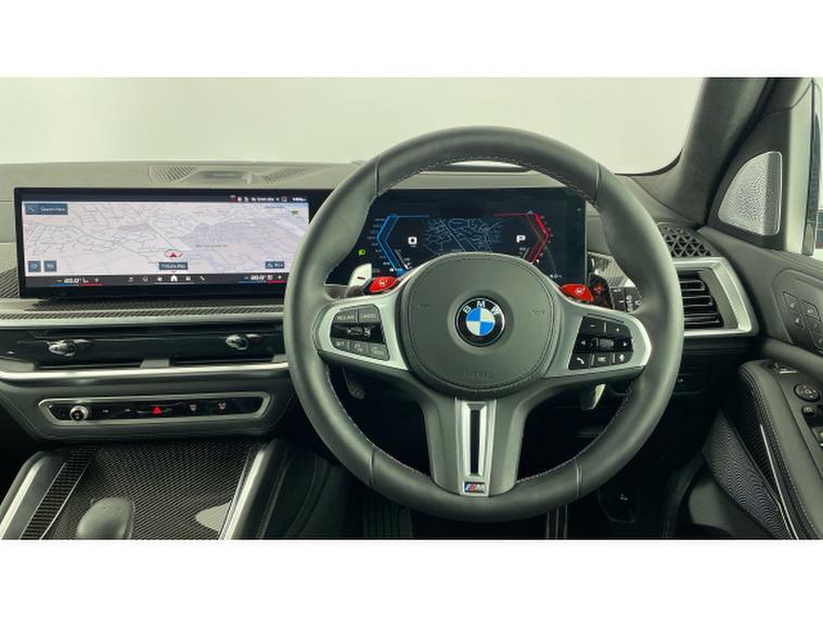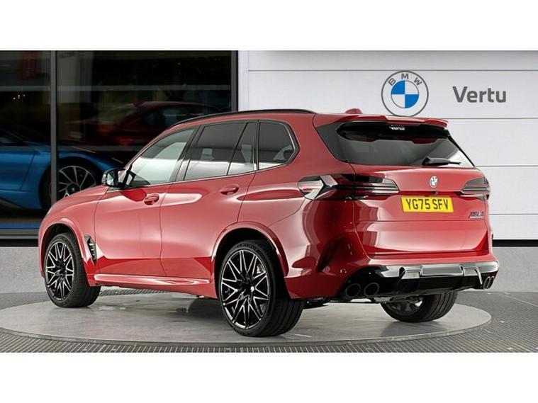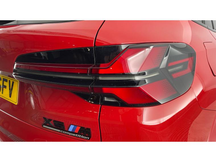 BMW X5 M xDrive X5 M Competition 5dr Step Auto Petrol Estate, , This 2025 BMW X5 M V8 Competition is a rare find, having had only one owner since new and being BMW manufacturer approved. This impressive vehicle boasts a powerful 4.4 litre petrol hybrid engine, paired with a four wheel drive drivetrain, ensuring excellent performance and control. It meets Euro 6 emission standards and offers a substantial towing weight of 2700 kg. Notable features include M Brakes with Black Calipers, a Comfort Pack with Keyless Entry and a Heated Steering Wheel, and the expansive Sky Lounge Panoramic Glass Sunroof which includes an opening function. Further enhancing convenience are Comfort Access with Keyless Entry and a dedicated storage area for Wireless Phone Charging.