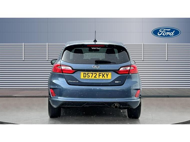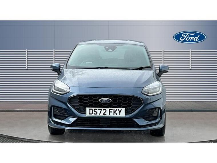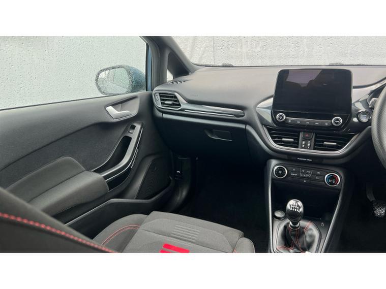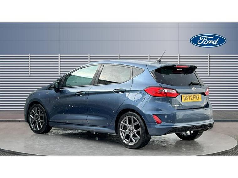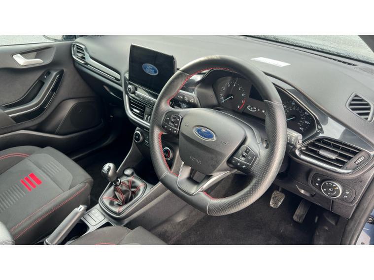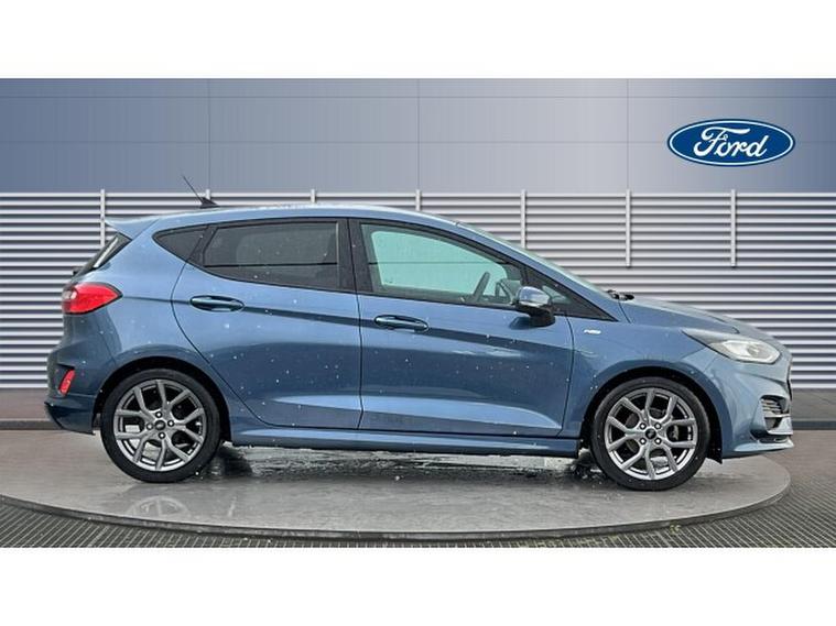 Ford Fiesta 1.0 EcoBoost Hybrid mHEV 125 ST-Line Edition 5dr Petrol Hatchback, , Gloucester Ford have this low mileage Ford Fiesta 1.0 EcoBoost mHEV 125 ST-Line Edition finished in Chrome Blue. This Ford Fiesta ST-Line Edition in Chrome Blue is a brilliantly balanced hatchback that blends efficiency, modern technology and sporty styling in a way thats hard not to admire. Its 1.0-litre EcoBoost mHEV (mild hybrid) engine delivers a lively 125 PS with smooth, responsive performance thanks to the intelligent integration of a 48-volt mild-hybrid system. By capturing and reusing energy normally lost during braking, it improves fuel economy and reduces emissions, making every journey both enjoyable and efficient. Visually, the ST-Line Edition stands out with its dynamic design cues, 17 alloy wheels, unique ST-Line grille, aerodynamic body styling and a distinctive rear spoiler all contribute to a confidently sporty appearance that turns heads in Chrome Blue. Inside, the Fiesta feels modern and well thought-out, with a Sensico wrapped steering wheel, comfortable seats and smart cabin finishes that make everyday driving a pleasure. Tech and convenience are strong points too. SYNC 3 comes as standard with an 8″, touchscreen, built-in navigation, Apple CarPlay and Android Auto, plus FordPass Connect for remote connectivity, keeping you connected and entertained wherever the road takes you. Practical additions like rear parking distance sensors add confidence to everyday driving and make manoeuvring and parking in tight spaces easier and safer. Overall, the Fiesta ST-Line Edition strikes a superb balance of sporty style, advanced technology, and efficiency in a compact, fun-to-drive package, a brilliant choice for drivers who want all-round capability without compromise.