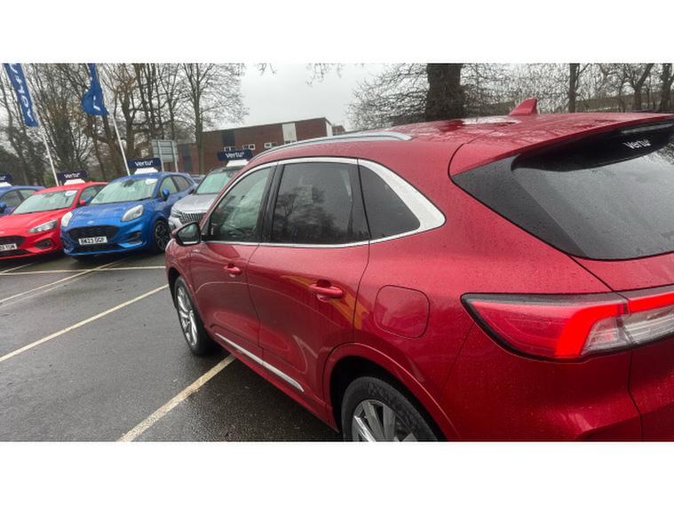 Ford Kuga 2.5 PHEV Vignale 5dr CVT Estate, , Experience the perfect blend of luxury, practicality, and electrified performance with this 2024 Ford Kuga Vignale PHEV in striking Lucid Red. From a motoring journalists perspective, the Kuga Vignale PHEV is the ultimate family SUV, combining the versatility of a spacious crossover with the efficiency and smoothness of a plug-in hybrid. Its sleek, bold design and refined Vignale detailing give it a premium look that stands out on the road, while the elevated driving position ensures confidence in every journey.
