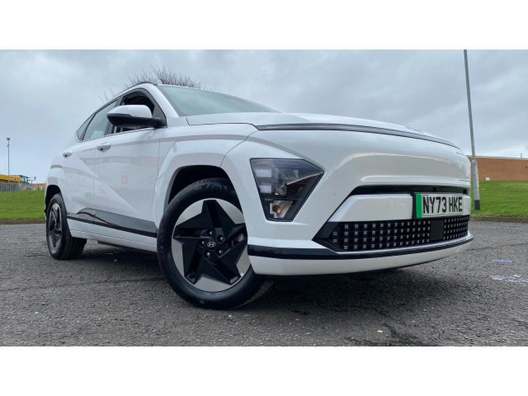 Hyundai KONA 160kW Advance 65kWh 5dr Auto Electric Hatchback, , The Hyundai KONA 160kW Advance 65kWh 5dr Auto Electric Hatchback is a superb example of modern electric motoring, finished in clean white and registered 23/73 with just 10, 332 miles. Powered by a strong 160kW electric motor paired with a 65kWh battery, this KONA delivers smooth, responsive performance with zero emissions and an impressive driving range of up to around 300 miles on a full charge, making it ideal for both daily commutes and longer journeys. The Advance specification offers a high level of equipment, including 17-inch alloy wheels, full LED headlights and daytime running lights, roof rails and a sleek, aerodynamic design. Inside, the cabin is well appointed with a large touchscreen infotainment system featuring built-in navigation, Apple CarPlay and Android Auto, DAB radio and Bluetooth connectivity. Comfort is enhanced with dual-zone climate control, keyless entry and start, a digital driver display and smart cruise control with stop and go. Safety features include forward collision avoidance assist, lane keep assist, blind spot monitoring and front and rear parking sensors with a rear-view camera. Offering excellent practicality, advanced technology and low running costs, this KONA Electric is a fantastic choice. Visit us here at Hyundai Peterlee to see it for yourself.