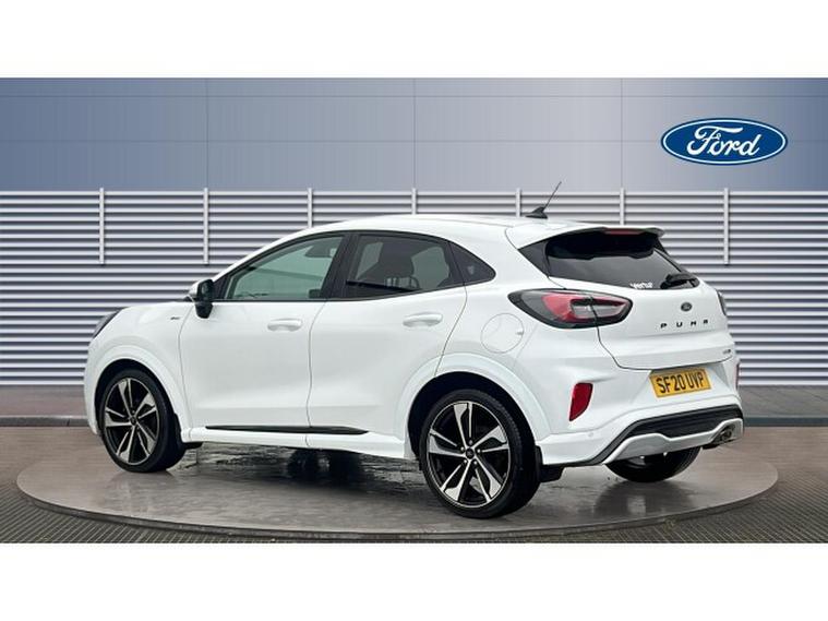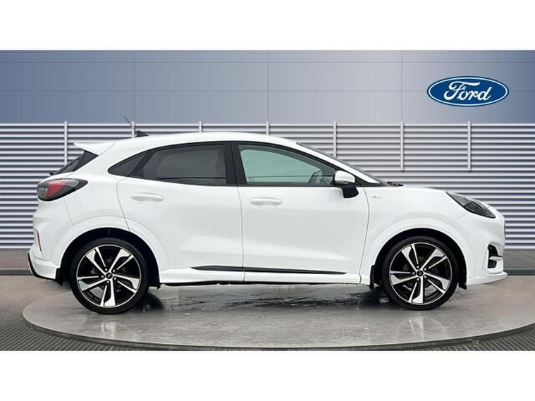 Ford Puma 1.0 EcoBoost Hybrid mHEV 155 ST-Line 5dr Petrol Hatchback, , Gloucester Ford have this low mileage Ford Puma 1.0 EcoBoost mHEV 155 ST-Line finished in Frozen White. This Puma 1.0 EcoBoost mHEV 155 ST-Line is a standout compact SUV that perfectly blends sporty character, everyday practicality, and modern efficiency. Finished in crisp Frozen White, it delivers a clean, confident look that highlights the Pumas dynamic ST-Line styling, including its athletic stance and sharp design details. This is a car that feels just as good to look at as it does to drive. This 1.0 EcoBoost mild-hybrid engine with 155 PS provides impressive performance while remaining efficient and responsive. The mHEV technology enhances acceleration, improves fuel economy, and delivers a smoother driving experience, making every journey feel effortless whether in town or on the open road. The ST-Line specification adds a sporty edge to the drive, offering a more engaging and confident feel behind the wheel. Inside, the Puma is equally impressive. The cabin is thoughtfully designed, combining comfort, quality, and technology. Heated seats ensure maximum comfort on colder days, adding a premium touch that makes every drive more enjoyable. The intuitive SYNC 3 infotainment system keeps you seamlessly connected, offering easy access to navigation, entertainment, and smartphone integration, all through a clear and responsive interface. Practicality is another strong point. Rear parking sensors provide added confidence when manoeuvring, making parking in tight spaces stress-free and safe. The Pumas clever layout and well-considered design make it ideal for daily use, commuting, and weekend adventures alike. Overall, the Ford Puma 1.0 EcoBoost mHEV 155 ST-Line delivers an excellent balance of style, performance, comfort, and technology. Its a modern, efficient, and genuinely enjoyable car that offers outstanding value and a premium driving experience in a compact, stylish package.