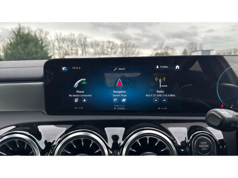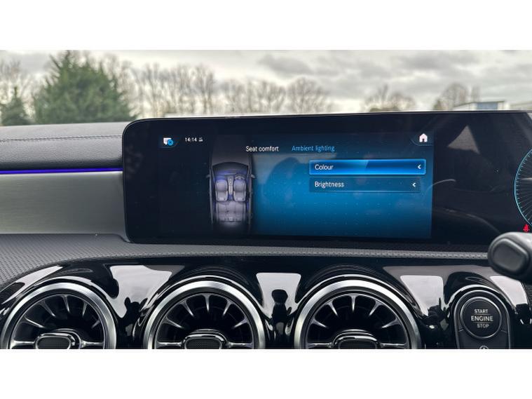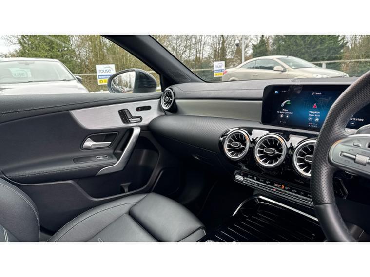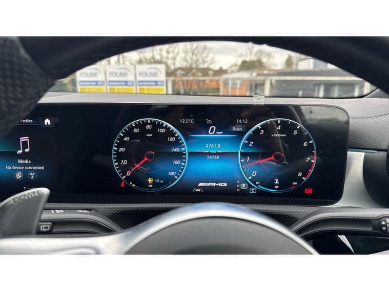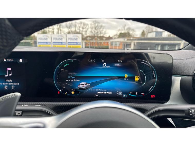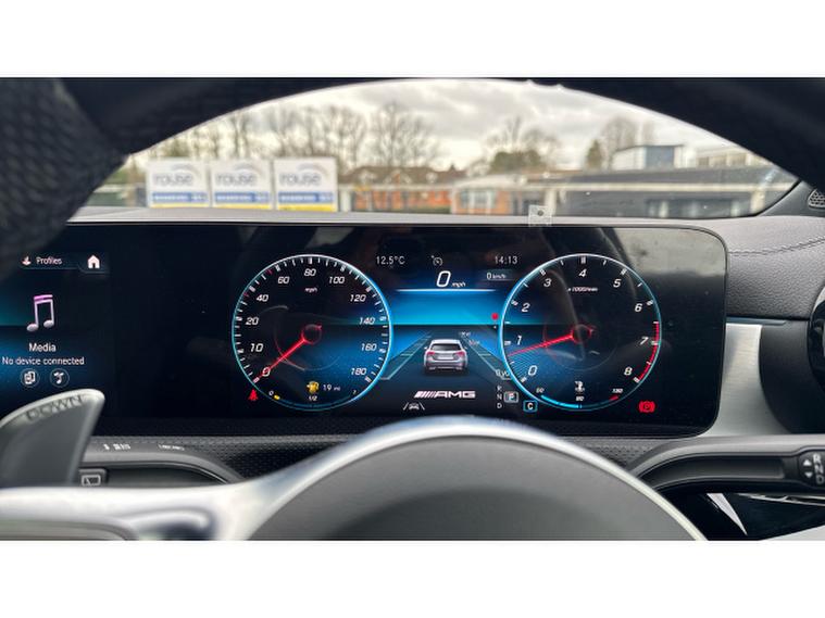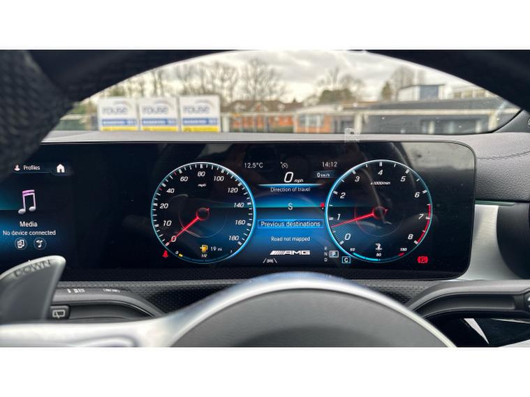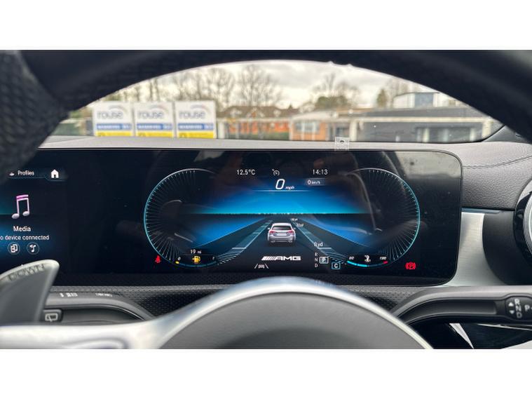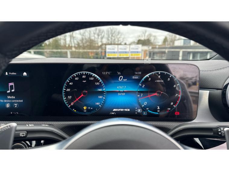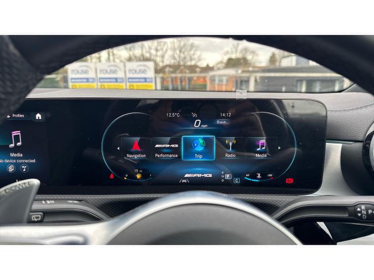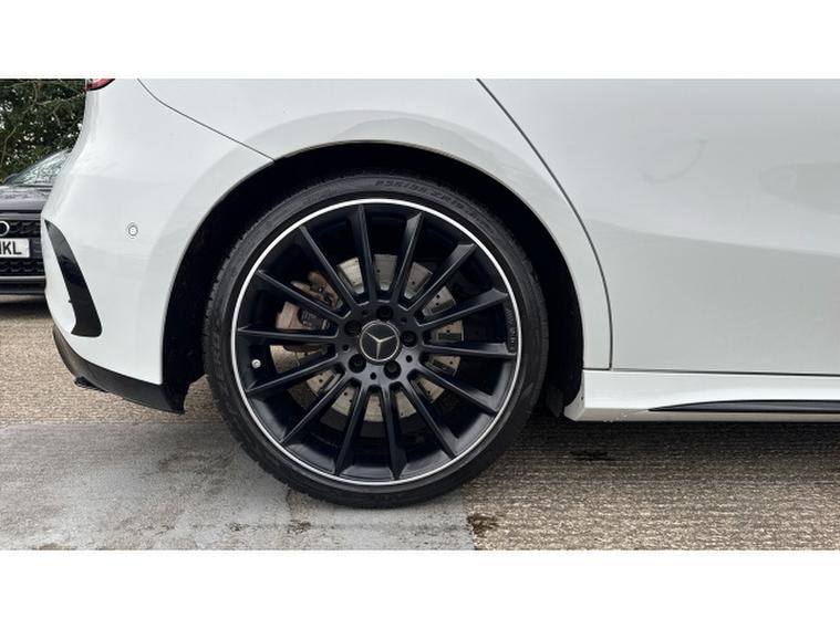 Visually it is pure AMG theatre. Digital White Metallic paint contrasts beautifully with the AMG Night Package, AMG Aerodynamics package and muscular 19 Inch AMG alloy wheels, giving this A Class a purposeful and aggressive stance. MULTIBEAM LED headlamps sharpen both the look and night time visibility.