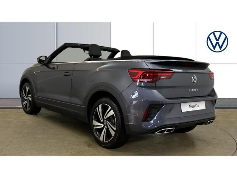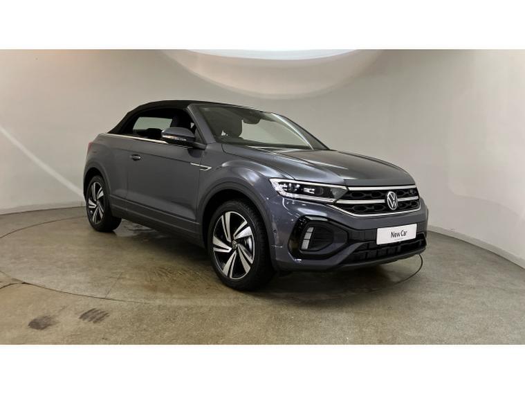 Volkswagen T-Roc 1.5 TSI R-Line 2dr DSG Petrol Cabriolet, , The Volkswagen T-Roc Cabriolet R-Line in Smokey Grey Metallic presents a striking blend of style and practicality for those seeking a compact convertible with everyday usability. Its contrasting black roof and sharp R-Line detailing give it a sporty, premium appearance, while the wind deflectors enhance comfort during open-top drives. The 18 'Nevada' black diamond turned alloys add a touch of sophistication, perfectly complementing the cars dynamic silhouette.