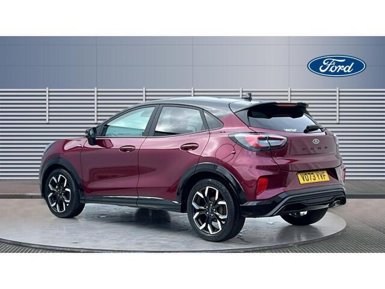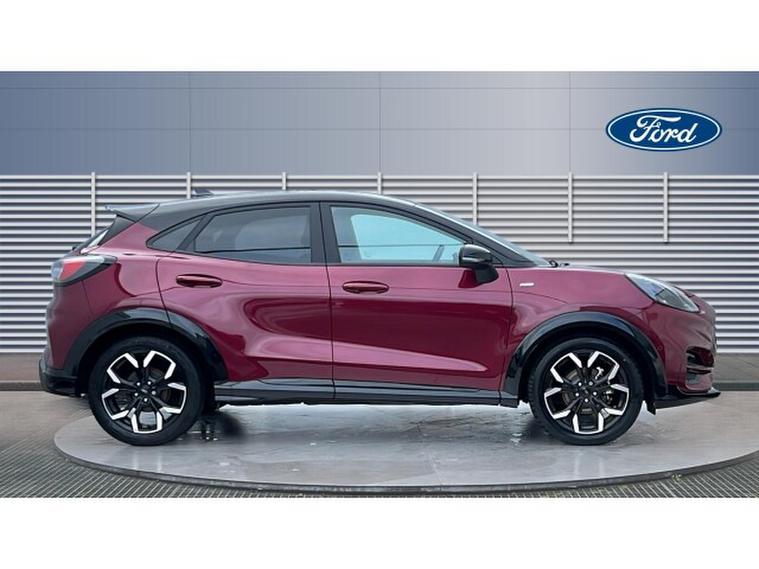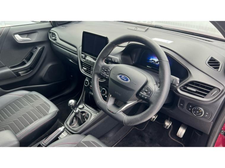 Ford Puma 1.0 EcoBoost Hybrid mHEV Vivid Ruby Edition 5dr Petrol Hatchback, , Gloucester Ford have this 1 owner from new Ford Puma Vivid Ruby Edition. This Puma Vivid Ruby Edition is a vibrant, stylish, and confidently equipped compact SUV that brings flair and functionality to every journey. Finished in the eye-catching Vivid Ruby colour, this Puma makes a bold statement on the road, blending dynamic design with everyday practicality in a way that truly stands out in its class. From the moment you sit behind the wheel, the Puma Vivid Ruby Edition feels like a car designed around you. The driving experience is engaging and responsive, with agile handling that makes urban driving and winding roads equally enjoyable. The suspension strikes a comfortable balance, smoothing out bumps while keeping you connected to the road. Inside, the cabin is thoughtfully laid out with high-quality materials and a modern aesthetic. The SYNC 3 infotainment system takes centre stage with its intuitive interface, responsive touchscreen, and seamless smartphone integration. Navigation, music, and connectivity are all easily accessible, keeping you focused and entertained on every trip. Cold mornings are instantly more pleasant thanks to the heated seats, which provide welcome warmth and comfort from the moment you start your journey. The supportive seats make longer drives more relaxing, while clever storage solutions and a flexible load space enhance the Pumas practicality for everyday life and weekend adventures alike. The Vivid Ruby Edition also comes with a host of desirable features that elevate the driving experience, combining modern technology with thoughtful creature comforts. Whether youre commuting, running errands, or heading off on a getaway, this Puma delivers confidence and enjoyment at every turn. Overall, the Ford Puma Vivid Ruby Edition is a compelling choice for drivers seeking a stylish, well-equipped, and fun-to-drive compact SUV, one that doesnt just meet expectations but surpasses them.