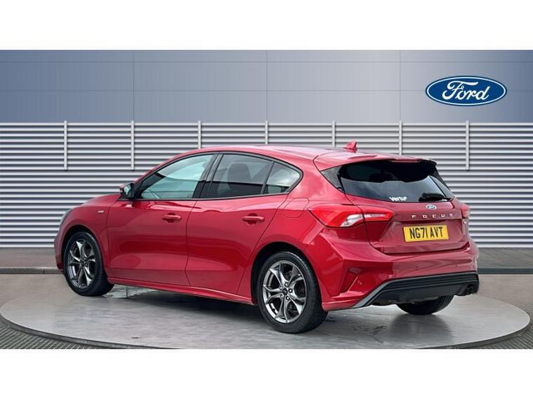 Ford Focus 1.0 EcoBoost Hybrid mHEV 125 ST-Line Edition 5dr Petrol Hatchback, , Gloucester Ford have this 2 owner from new Ford Focus Hatchback 1.0 EcoBoost mHEV 125 ST-Line Edition finished in Fantastic Red. This Focus mHEV 125 ST-Line Edition in Fantastic Red is an engaging and stylish compact hatchback that delivers a driving experience full of confidence, comfort, and modern technology. From the moment you take the wheel, this Focus feels athletic and poised, with crisp steering and agile handling that make everyday driving, whether in the city or on the open road, genuinely enjoyable. The 1.0 EcoBoost mHEV 125 engine strikes a superb balance between performance and efficiency. The mild-hybrid system adds refinement and responsiveness, making the power delivery smooth and eager while helping to keep fuel consumption in check. Combined with the sporty ST-Line Edition styling, this Focus not only looks dynamic but also drives with a spirited character thats a joy to experience on twisty routes or motorway runs. Inside, the cabin blends practicality with quality. The SYNC 3 infotainment system enhances the journey with an intuitive interface, responsive touchscreen, and seamless smartphone connectivity. Navigation, music, and hands-free communication are all easily within reach, helping to keep every drive pleasurable and distraction-free. Parking and manoeuvring are made easier and more reassuring thanks to the front and rear parking sensors. They offer clear, helpful feedback that boosts confidence in tight spaces, making city driving and busy car parks less stressful. The Fantastic Red finish gives this Focus a bold, eye-catching presence on the road, complementing the athletic design cues of the ST-Line Edition. Practical touches throughout, sturdy seats, clever storage, and user-friendly controls, make this hatchback comfortable for both daily commutes and longer journeys. Overall, the Ford Focus ST-Line Edition stands out as a well-rounded, fun-to-drive hatchback that combines style, technology, and practicality with great balance and appeal.