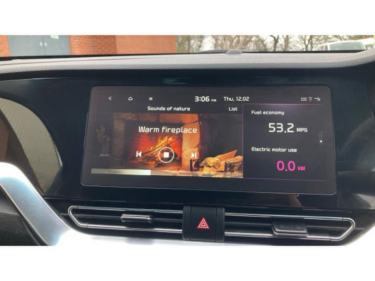 The cabin of the Niro Estate is also designed with modern connectivity and comfort in mind. A touchscreen infotainment system with Apple CarPlay and Android Auto keeps your phone seamlessly integrated for navigation, music and communication, while features like a wireless smartphone charger and well-placed storage spaces enhance convenience on the move. Well-appointed seating and thoughtful control layout help maintain a relaxed driving environment, reducing stress on busy commutes or longer trips.