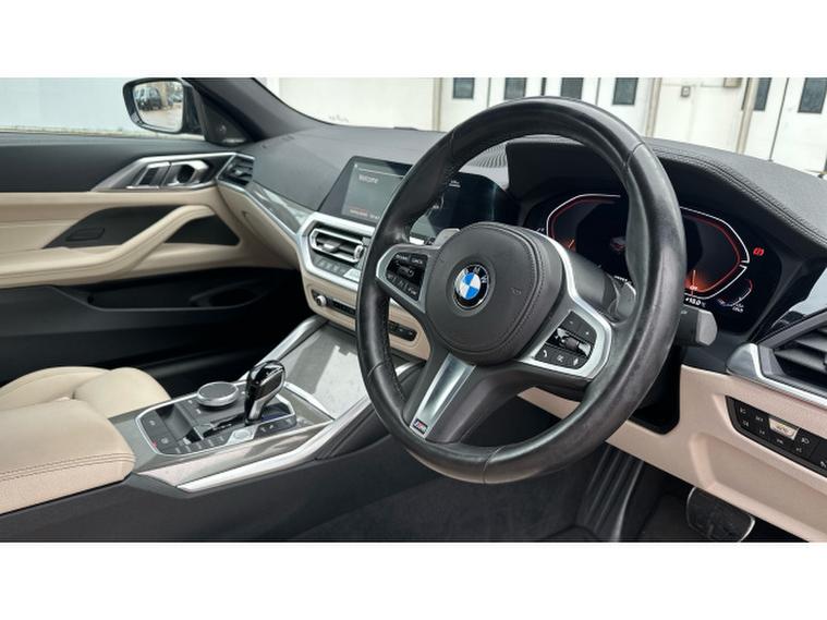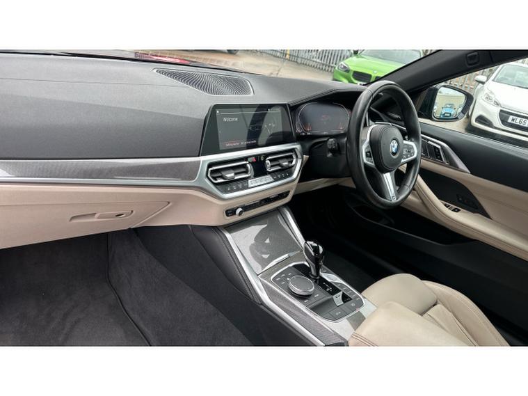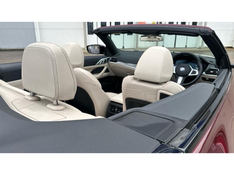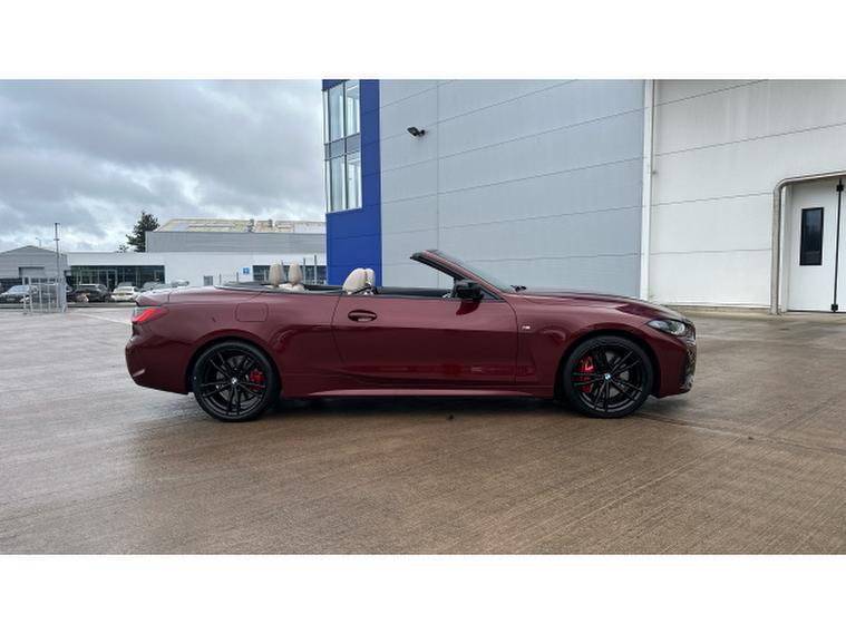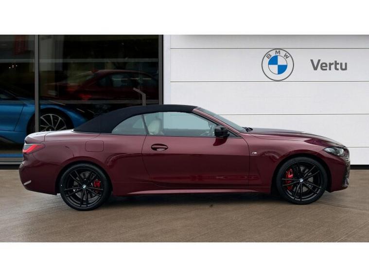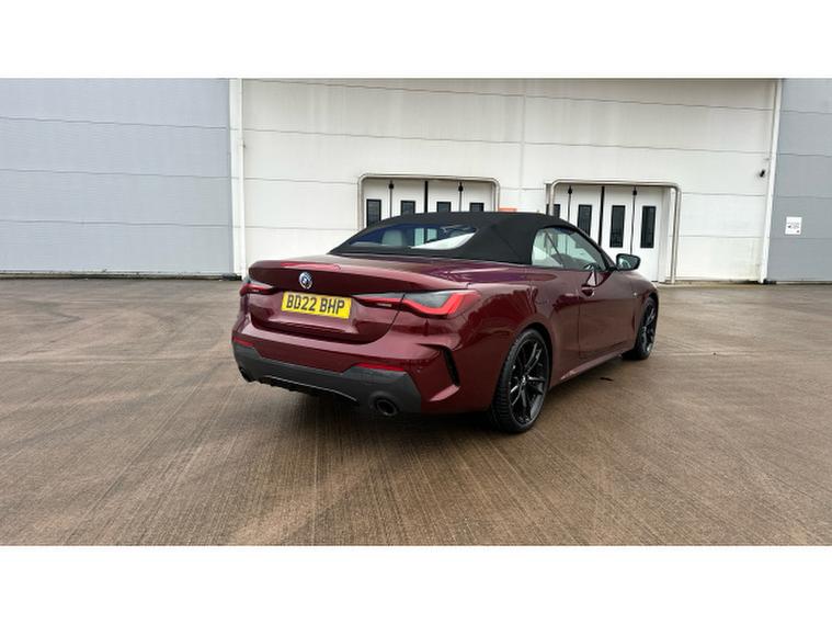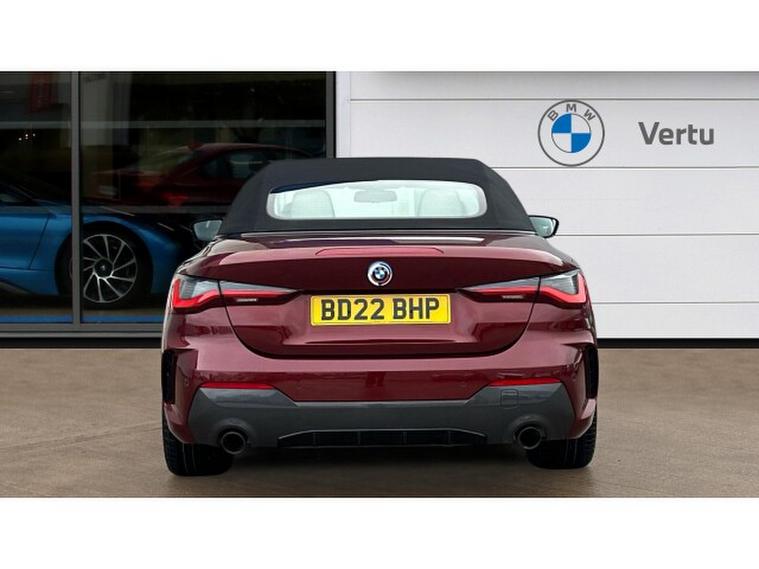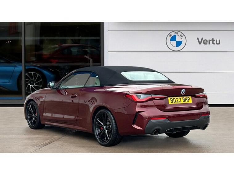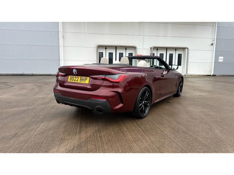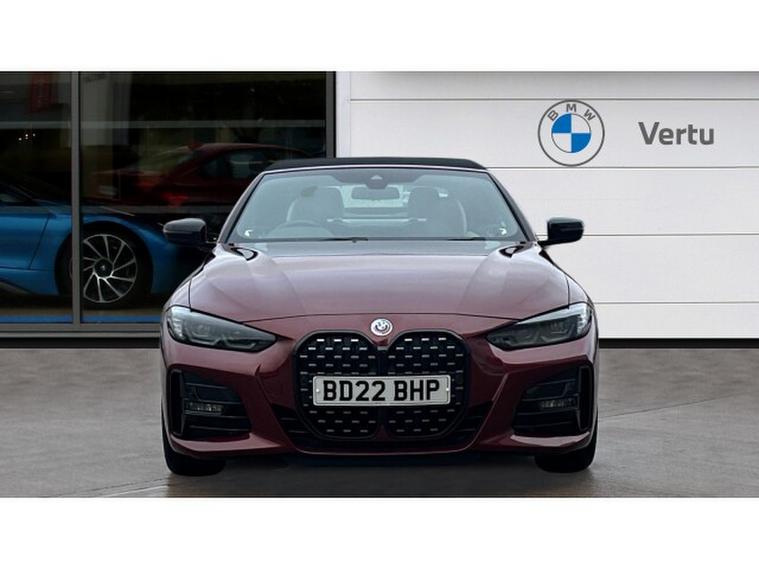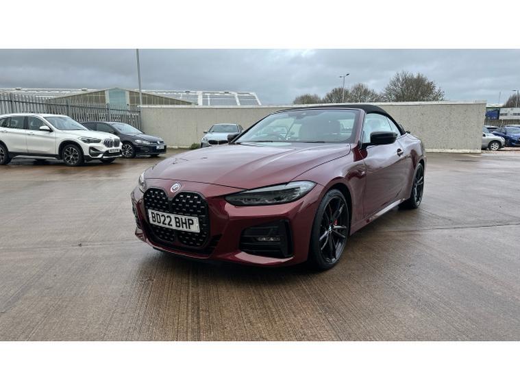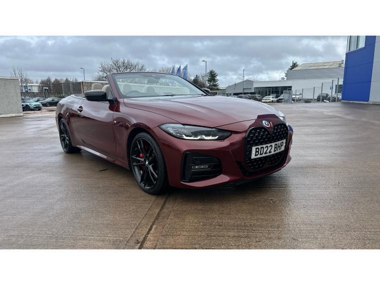 BMW 4 Series 420i M Sport 2dr Step Auto [Pro Pack] Petrol Convertible, , Experience open-top driving at its finest with this BMW 4 Series Convertible 420i M Sport Pro Edition 2dr Step Auto, finished in the stunning Aventurine Red III Metallic and complemented by Oyster seats with Grey Contrast Stitching. With just 20, 518 miles and registered in 2022, this elegant convertible perfectly balances sporting performance, luxury and everyday usability.