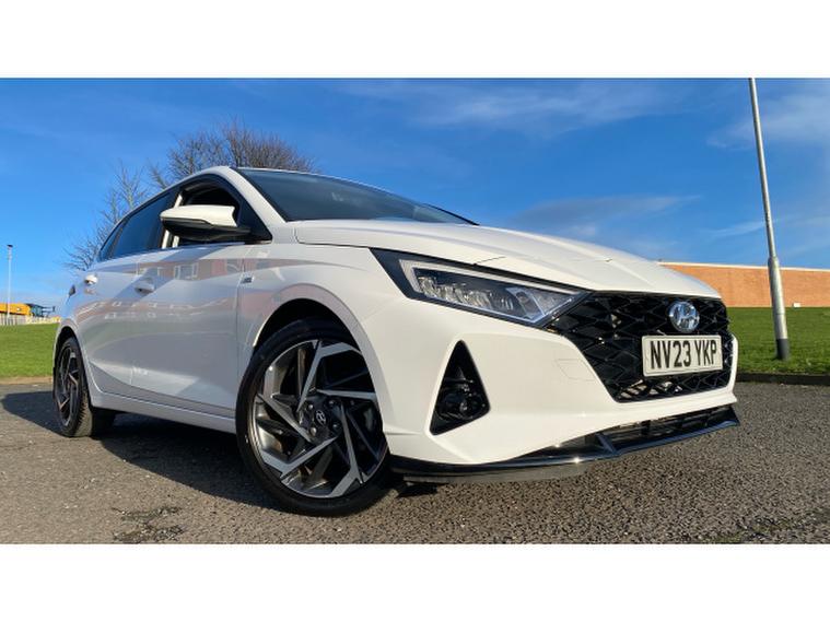 Hyundai i20 1.0T GDi 48V MHD Premium 5dr DCT Petrol Hatchback, , This stunning Hyundai i20 1.0T GDi 48V MHD Premium 5dr DCT Petrol Hatchback is a fantastic opportunity to own a nearly new, highly specified car with just 365 miles on the clock. Finished in crisp white and registered 23/23, it combines modern styling with impressive efficiency thanks to its advanced 1.0-litre turbocharged petrol engine paired with a 48V mild hybrid system and smooth automatic DCT gearbox. The Premium specification means it comes loaded with desirable features, including a large touchscreen infotainment system with Apple CarPlay and Android Auto, digital driver display, satellite navigation, Bluetooth connectivity, rear parking sensors with camera, keyless entry and start, climate control, cruise control, lane keep assist, forward collision avoidance, and stylish alloy wheels. Inside, the cabin feels refined and comfortable, making it ideal for both daily commuting and longer journeys, while the hatchback layout offers practicality and easy manoeuvrability. With low running costs, excellent fuel economy, and Hyundais renowned build quality and reliability, this i20 represents outstanding value. Visit us here at Hyundai Peterlee to see this impressive car for yourself and take it for a test drive today.