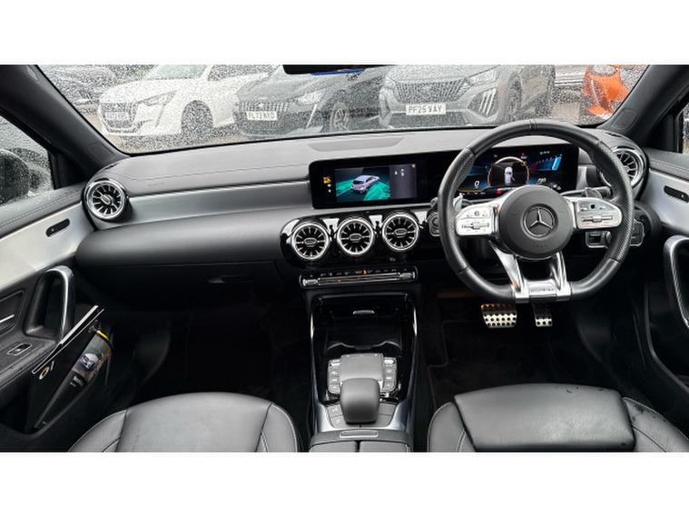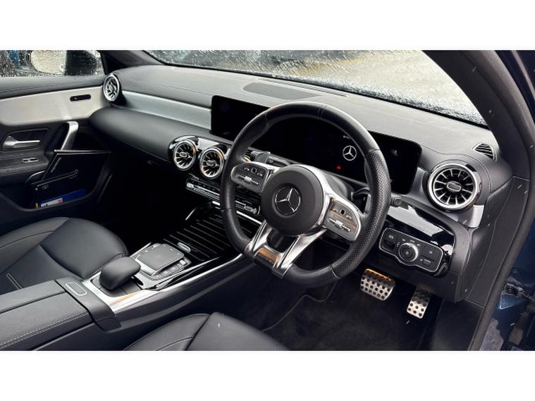 Mercedes-AMG A-Class A35 4Matic Premium Edition 5dr Auto Petrol Hatchback, , Now heres a stunning example of Mercedes-Benzs hugely popular premium hatchback that has just arrived with us at Peugeot Derby. This Mercedes-Benz A-Class AMG Line, finished in a sleek dark exterior, perfectly combines sporty styling, premium comfort and cutting-edge technology. First registered in 2022 on a 22 plate, she has covered just 8, 909 miles, making her an exceptionally low-mileage example that has clearly been very lightly used. Her paintwork presents beautifully, the AMG alloy wheels are in excellent condition, and the interior remains fresh, modern and well cared for throughout. As an AMG Line model, she benefits from a sporty body kit, distinctive AMG styling details, heated leather sports seats, ambient interior lighting and a refined cabin layout. Features include satellite navigation, front and rear parking sensors, reversing camera, Apple CarPlay and Android Auto, Bluetooth connectivity, DAB radio, cruise control, climate control and Mercedes intuitive digital cockpit display. The drive is smooth, refined and responsive, making her ideal for both city driving and longer motorway journeys. With her very low mileage, premium specification and strong Mercedes-Benz build quality, we can only describe her as excellent value for money and a fantastic opportunity to own a stylish and desirable premium hatchback. Please dont hesitate to contact the team at Peugeot Derby to arrange your test drive today. We are located just off Sir Frank Whittle Road in Derby the best postcode to use is DE21 4RX. We look forward to welcoming you soon.
