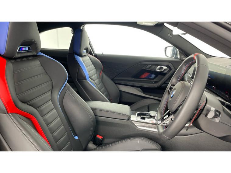 BMW M2 480 2dr Step Auto Petrol Coupe, , This 2025 BMW M2 BiTurbo, a single owner vehicle, offers a compelling blend of performance and comfort. Powered by a 3.0L Petrol Engine and meeting Euro 6 emission standards, this M2 comes equipped with desirable features such as a Heated Steering Wheel for those chilly mornings, and Comfort Access for effortless keyless entry. Navigating tight spaces is made simple with the Parking Assistant, which includes front and rear sensors along with a rear camera. Furthermore, enjoy the convenience of Wireless Phone Charging and the adaptive illumination provided by the Adaptive LED Headlights.