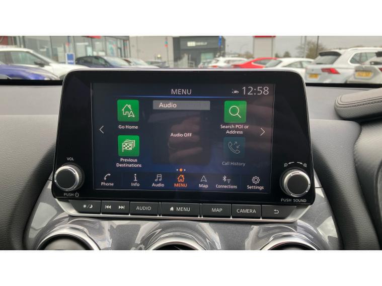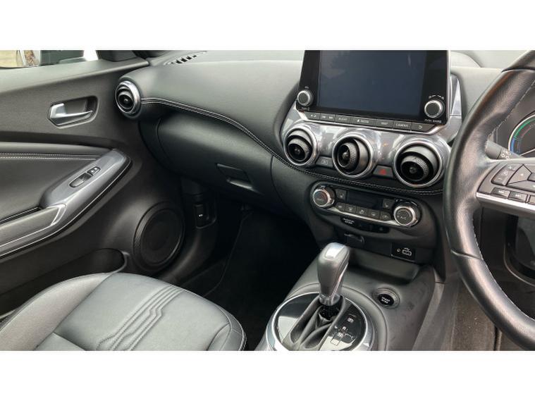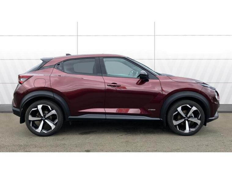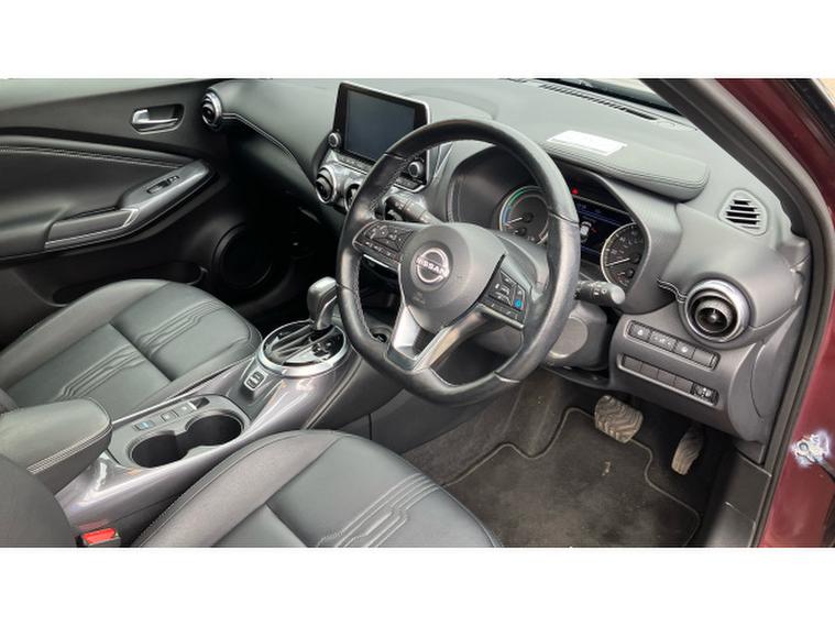 Nissan Juke 1.6 Hybrid Tekna 5dr Auto Hybrid Hatchback, , The Nissan Juke has styling like no other and a decent amount of standard equipment. The Nissan Juke is one of the most divisive cars on the road thanks to its outlandish styling, but underneath the metalwork is a sensible small SUV thats affordable and well equipped. Though for funky looks, the Juke is still king. The swept-back LED strips above massive, round headlights, low roofline and mass of creases along its doors and wheel arches come together in what is one of the most out-there cars on sale. We still cant tell if its handsome, but the Juke is certainly attention grabbing. The cabin isnt as zany as the exterior, with wraparound door cards enveloping the dashboard and a widescreen infotainment display offset above the air vents. Material quality is good, with an Alcantara strip behind the touchscreen elevating things slightly. With most Nissan Jukes set for a lifetime of running around town, its no surprise to learn this is where its best suited. A high-set driving position means youve got a good view of the road ahead, and suitably light steering makes it a breeze to park. With 422 litres to work with in the boot, the Nissan Juke is pretty much par for the course in its class. For context, a VW T-Cross takes the cake with 455 litres, while the Renault Captur matches the Juke. A Skoda Kamiq offers less than all of these at 400 litres. You need the load floor in its higher position if you want it to be level with the 60-40 split-and-fold rear seats when they are tipped forward. With this done, the Juke has up to 1, 305 litres of load capacity, which is among the best among its peers. All versions of the Juke are equipped with a 12.3-inch touchscreen infotainment system. This is a big improvement on the setup previously fitted to the Juke - it's clear, bright and responsive, though certain aspects of the interface are easy to use. It does come equipped with Android Auto and Apple CarPlay - allowing you to seamlessly run your phone apps through the screen.