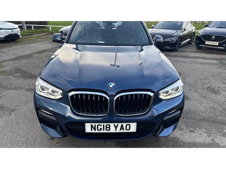 BMW X3 xDrive20d M Sport 5dr Step Auto Diesel Estate, , The 2018 BMW X3 xDrive20d M Sport in striking blue is a versatile and engaging diesel estate SUV that perfectly balances performance, practicality, and premium appeal. With its dynamic yet refined exterior, this X3 turns heads with the iconic BMW kidney grille, sleek LED headlights, and muscular body lines that echo strength and athleticism. The deep blue paint adds a touch of sophistication while enhancing the M Sports bold and sporty presence.