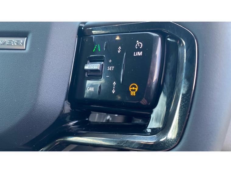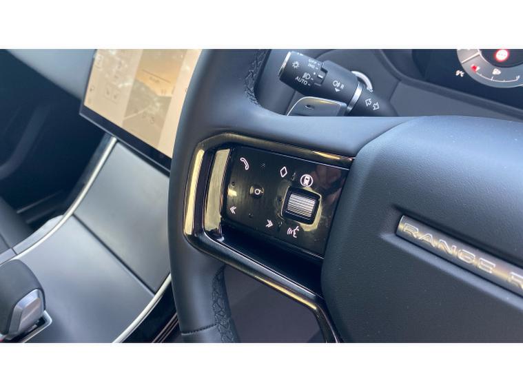 Dynamic SE specification includes Pivi Pro infotainment with navigation, Apple CarPlay and Android Auto, digital driver display, Meridian sound system, heated front seats, dual-zone climate control, LED headlights, front and rear parking sensors, rear view camera, adaptive cruise control, lane keep assist, traffic sign recognition, keyless entry and start, and Terrain Response for assured all-weather capability.