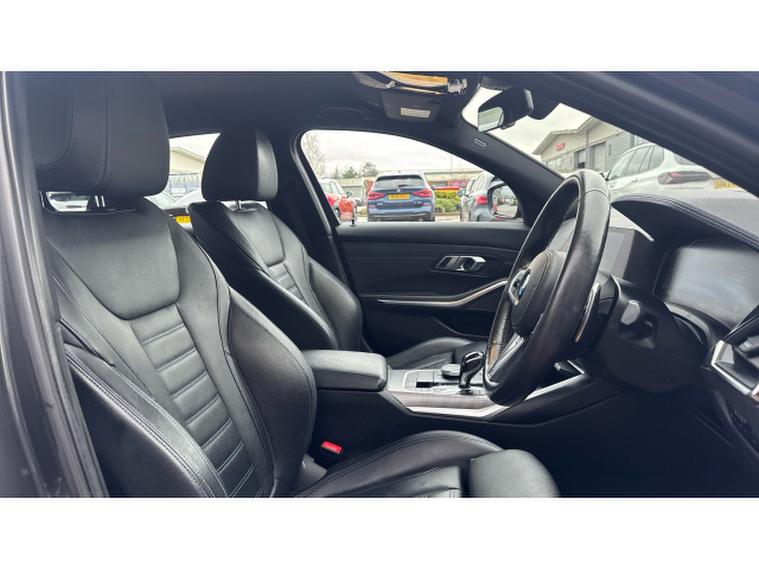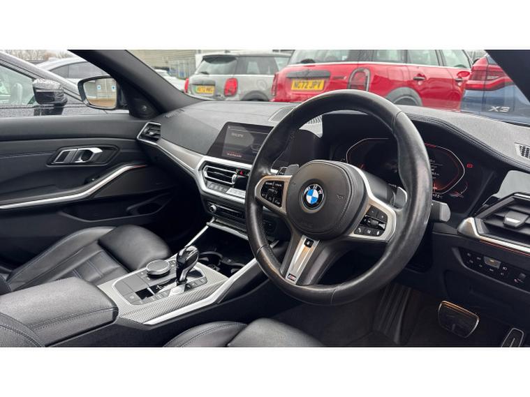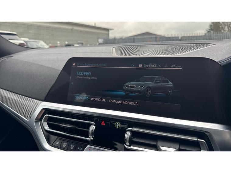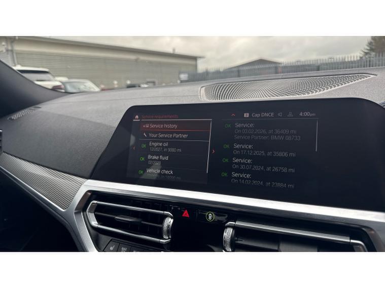Equipped with the Technology Package, this 3 Series offers an impressive blend of innovation and luxury. Features such as Live Cockpit Professional, Head-Up Display, Gesture Control and WiFi Hotspot create a modern and intuitive driving environment, while Harman/Kardon surround sound delivers exceptional audio quality. Comfort is further enhanced with the Comfort Package, heated steering wheel, heated front sport seats, acoustic glass and ambient lighting, making every journey relaxed and enjoyable. Practicality is well covered with a larger fuel tank, electric bootlid and folding wing mirrors, while Adaptive LED headlights, front LED foglights, Parking Assistant and cruise control provide added confidence on the road. M Sport suspension, M Sport exterior styling and high-gloss Shadowline detailing complete the dynamic character of this well-specified saloon.