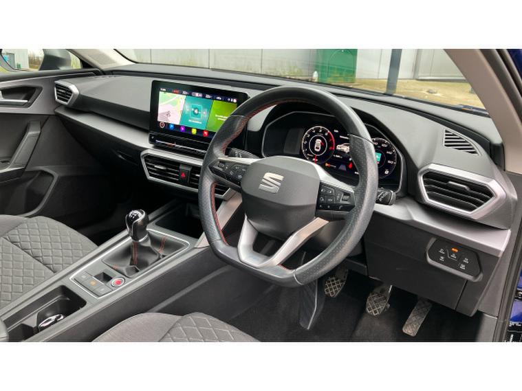 SEAT Leon 1.5 TSI EVO 150 FR 5dr Petrol Estate, , This 2021 SEAT Leon TSI EVO FR is a manufacturer approved vehicle, offering peace of mind alongside its stylish design. Powered by a 1.5 litre Euro 6 compliant petrol engine, this FR trim model combines performance with efficiency. It comes equipped with striking LED headlights featuring dynamic turn signals, ensuring excellent visibility. Inside, you'll find the Media System Plus with navigation and Bluetooth connectivity, alongside Full Link smartphone integration that supports wireless Apple CarPlay and wired Android Auto, keeping you connected on the go. Parking is made simple with front and rear parking sensors and Park Assist, while the convenience of a wireless device charger is also included.
