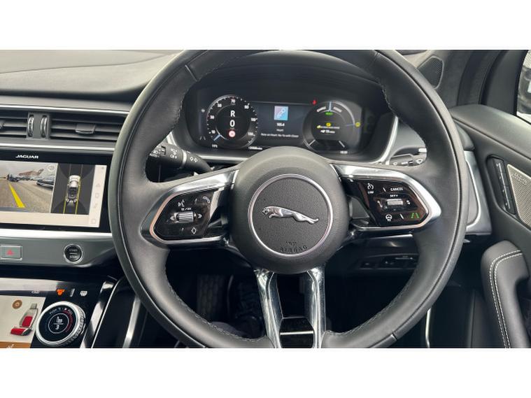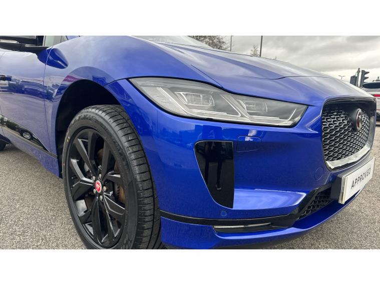 Jaguar I-Pace 294kW EV400 HSE Black 90kWh 5dr Auto 11kW Charger Electric Estate, , Vertu JLR Bolton are proud to offer this stunning Jaguar I-Pace EV400 HSE Black finished in Caesium Blue metallic with Ebony leather interior. This one owner car has been immaculately looked after by its former owner and comes in an immaculate condition. This car comes with optional tailgate/boot lid spoiler, secure tracker pro (subscription required) and clikc and go integrated base unit, 20 gloss black alloys, privacy glass and black pack. Standard features include heated steering wheel, fixed panoramic sunroof, adaptive cruise control, dual zone climate control, LED headlights, auto lights and wipers, DAB radio, Bluetooth, Apple car play, electric memory cooled and heated front seats, keyless entry, power tailgate, heated windscreen, power fold mirrors, reverse camera, push button start, steering wheel audio controls, land departure warning, cubby box, interactive driver display and much more. This car is ready to view, test drive and drive away today and comes as part of the Approved JLR programme which includes 12 months warranty, 12 months roadside assistance, MOT test warranty and 165 multi point inspection as part of purchase.