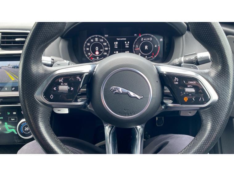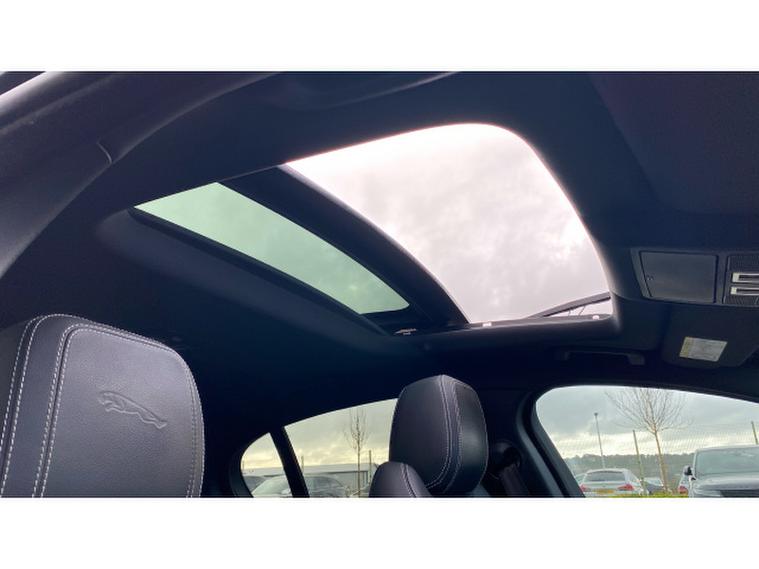 This XE is equipped with 19 Style 5031 Gloss Black alloy wheels, Black Exterior Pack, Secure Tracker, Sliding panoramic roof, Privacy Glass, Heated Steering Wheel, Heated Windscreen, Premium Upgrade Interior Pack, Illuminated Metal Treadplates, Ambient configurable interior lighting, Additional power sockets, Powered gesture tailgate, Wireless device charging, and auto-dimming, power-fold heated door mirrors with memory.