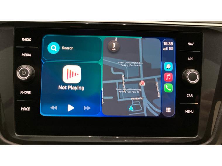 The striking exterior is enhanced by bold 20 Suzuka alloy wheels, LED headlights with Dynamic Light Assist and the R-Line exterior body kit, giving this Tiguan a powerful road presence. Inside, the R-Line Tech specification offers a premium and driver-focused cabin with sports styling, a leather-wrapped multifunction steering wheel with paddles, heated front seats and a panoramic sunroof that floods the interior with natural light.