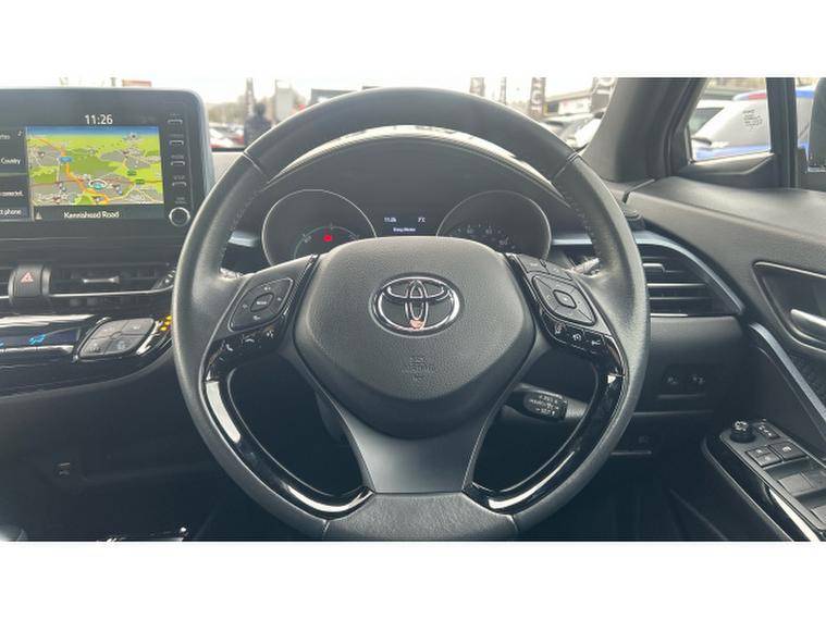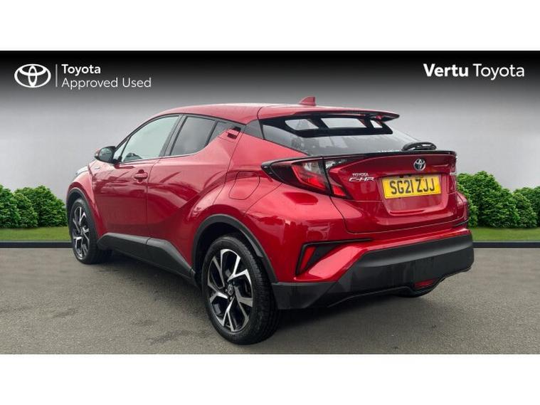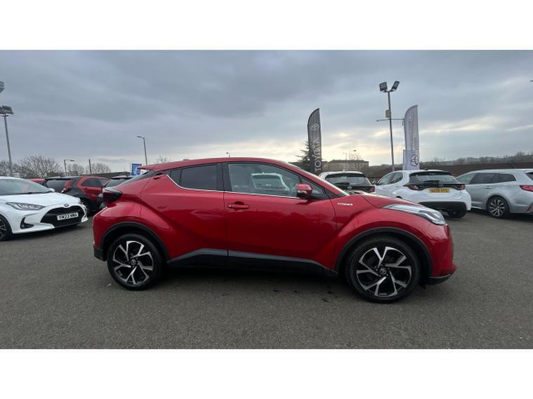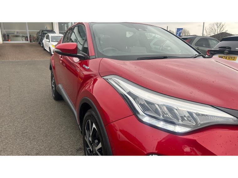 Toyota C-HR 1.8 Hybrid Design 5dr CVT Hybrid Hatchback, , This stunning Toyota C-HR Design 1.8 Hybrid Automatic is a real head-turner, finished in the eye-catching Scarlet Flare pearlescent paintwork that perfectly complements its bold, coupe-inspired styling. With just 38, 477 miles on the clock, this self-charging 1.8 Hybrid delivers a beautifully smooth automatic drive, excellent fuel efficiency and low running costs making it ideal for both city life and longer motorway journeys. The Design specification is packed with premium features including striking alloy wheels, privacy glass, LED headlights, dual-zone climate control, keyless entry and push-button start. Inside, youll find a large touchscreen infotainment system with Apple CarPlay and Android Auto, Bluetooth connectivity and a reversing camera for effortless parking. Toyota Safety Sense comes as standard, offering adaptive cruise control, lane departure alert and pre-collision system for added confidence behind the wheel. Best of all, it benefits from Toyotas incredible 10-Year Service Activated Warranty, giving you long-term peace of mind and outstanding value. Stylish, economical and loaded with technology this C-HR is a fantastic all-round package thats ready to impress.