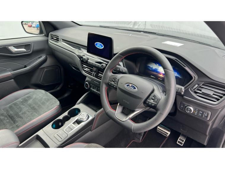 Ford Kuga 2.5 FHEV ST-Line X Edition 5dr CVT Hybrid Estate, , Gloucester Ford have this 1 owner from new Ford Kuga 2.5 FHEV ST-Line X Edition finished in Magnetic Grey. This Kuga 2.5 FHEV ST-Line X Edition CVT in Magnetic Grey is a striking and sophisticated SUV that perfectly balances performance, efficiency, and premium comfort. Its sleek, athletic design is enhanced by the ST-Line styling, giving it a confident road presence that is both modern and dynamic. The Magnetic Grey finish adds a refined, contemporary edge, ensuring it stands out effortlessly wherever it goes. The 2.5-litre Full Hybrid Electric Vehicle (FHEV) powertrain delivers a smooth and responsive driving experience. Paired with the seamless CVT automatic transmission, the Kuga offers impressive fuel efficiency without compromising on performance. The hybrid system transitions effortlessly between electric and petrol power, providing quiet operation in urban settings while maintaining strong capability for longer journeys. Inside, the ST-Line X Edition offers a premium and driver-focused cabin. Heated seats provide exceptional comfort during colder months, making every journey enjoyable regardless of the weather. The panoramic roof floods the interior with natural light, creating a spacious and airy atmosphere for both driver and passengers. It adds a touch of luxury that elevates every drive. Technology is at the heart of this model. The intuitive SYNC 3 infotainment system ensures seamless connectivity, with easy access to navigation, music, and smartphone integration. The rear-view camera enhances safety and convenience, making parking and manoeuvring simple and stress-free. Overall, the Ford Kuga 2.5 FHEV ST-Line X Edition CVT is an outstanding all-rounder. It combines bold styling, advanced hybrid efficiency, premium comfort features, and smart technology into one impressive package. Whether commuting daily or heading out on a family adventure, this Kuga delivers a refined, confident, and thoroughly enjoyable driving experience.