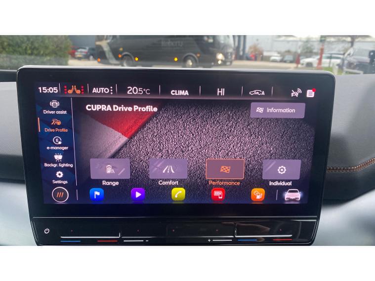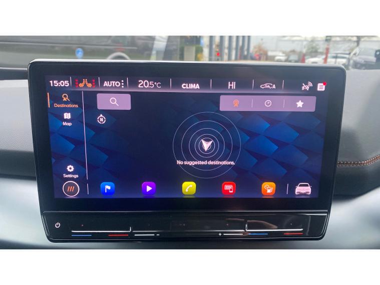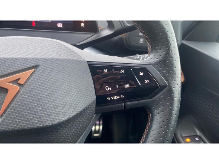The V2 specification turns the interior into a showcase of modern design. A digital driver display, large central touchscreen and ambient lighting create a futuristic atmosphere, while CUPRAs signature copper detailing adds warmth and personality. The driving position is spot-on, the sports seats are supportive, and the whole cabin feels premium, minimalist and focused on the driver.