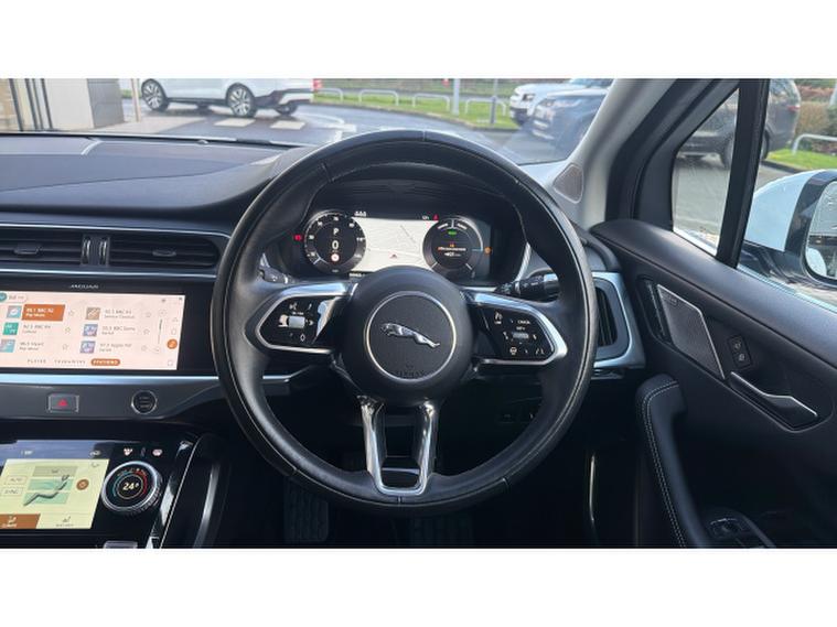 Jaguar I-Pace 294kW EV400 HSE 90kWh 5dr Auto [11kW Charger] Electric Estate, , This 2021 Jaguar I PACE 400 HSE is an exceptional electric vehicle offering impressive performance and advanced technology. As a Four Wheel Drive model, it provides confident handling in various conditions. This I PACE boasts a substantial 90 kWh battery, delivering a maximum range of 280 miles when new. Charging at home using a 7kW charger will take approximately 12 hours and 36 minutes for a full charge, while rapid public charging can replenish the battery from empty to 80% in just 50 minutes. Notable features include a heated front windscreen for those chilly mornings, a heated steering wheel for added comfort, and Blind Spot Assist to enhance safety. Keyless entry offers convenience, and Adaptive Cruise Control with Steering Assist makes longer journeys more relaxed.