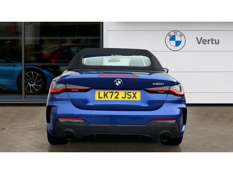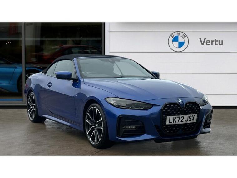 BMW 4 Series 420i M Sport 2dr Step Auto Petrol Convertible, , Turn heads with this striking BMW 4 Series 420i M Sport Coupe, finished in the eye-catching Portimao Blue Metallic and paired with Black upholstery featuring Grey Contrast Stitching. Registered in 2022 and with just 13, 601 miles, this low-mileage coupe offers a superb combination of sporty performance, premium comfort and unmistakable BMW design.