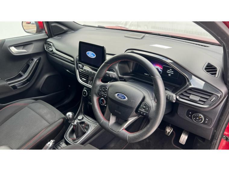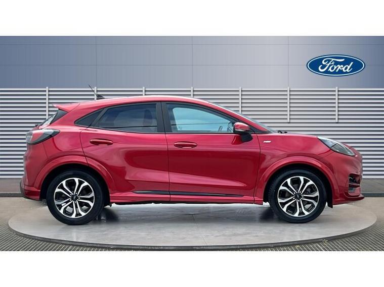 Ford Puma 1.0 EcoBoost Hybrid mHEV ST-Line 5dr Petrol Hatchback, , Gloucester Ford have this low mileage for its age Ford Puma 1.0 mHEV ST-Line finished in Fantastic Red. This Ford Puma ST-Line in Fantastic Red is a dynamic and stylish compact SUV that delivers an exciting blend of performance, efficiency, and everyday practicality. Its vibrant Fantastic Red paintwork gives the Puma a bold and sporty presence on the road, turning heads whether youre cruising through town or heading out for a weekend adventure. This is a car that truly stands out with personality. Powered by the responsive 1.0-litre EcoBoost mild-hybrid engine, the Puma strikes an excellent balance between spirited performance and impressive fuel economy. The mHEV system enhances throttle response and helps conserve fuel, making each drive feel smooth, responsive, and efficient, perfect for both urban commuting and longer journeys. The ST-Line trim adds sport-inspired design touches and driving dynamics that elevate the overall experience. Inside, the Pumas cabin reflects Fords commitment to driver-centric design. The SYNC 3 infotainment system brings intuitive connectivity with features like smartphone integration, voice control, and easy-to-use touch controls, ensuring your favourite apps and navigation tools are just a tap or voice command away. The ergonomically designed seats and well-thought-out interior layout make every drive comfortable and enjoyable. Parking and manoeuvring are simplified with the inclusion of rear parking sensors, providing peace of mind in busy spaces. These sensors offer clear alerts when reversing, making tight parking spots feel effortless and boosting confidence behind the wheel. Overall, the Ford Puma 1.0 EcoBoost mHEV ST-Line in Fantastic Red combines stylish design, efficient performance, smart technology, and practical features. Its a well-rounded SUV that caters to modern lifestyles, delivering an engaging driving experience without compromising on comfort or convenience. A truly impressive choice for anyone seeking a versatile and fun-to-drive vehicle.