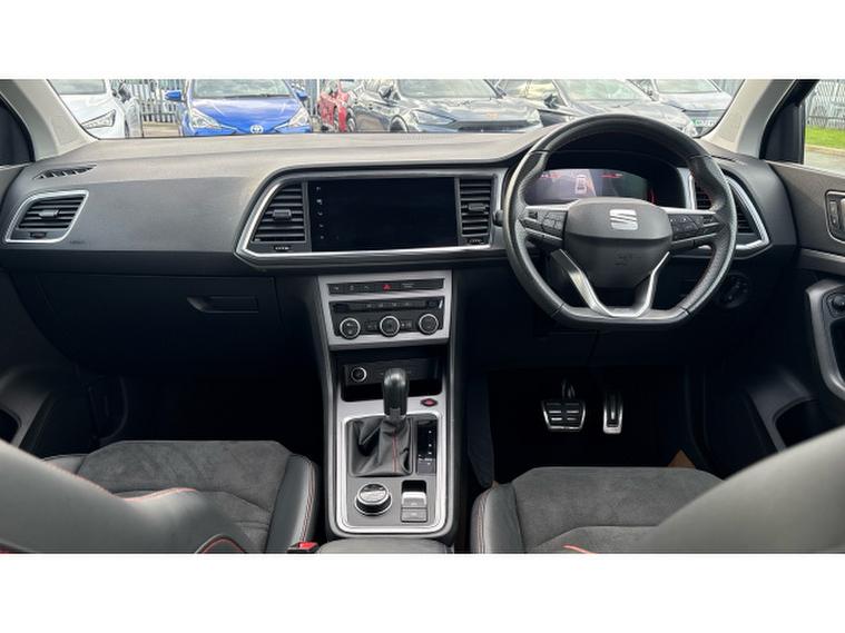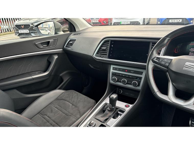 SEAT Ateca 1.5 TSI EVO FR 5dr DSG Petrol Estate, , This 2024 SEAT Ateca TSI EVO FR is a superb example, having had only one owner from new. This stylish SUV boasts a 1.5 litre Euro 6 compliant petrol engine, offering a responsive drive with a 0-62mph time of just 9.0 seconds. The FR trim level enhances its sporty appeal, and you'll appreciate the convenience of keyless entry, automatic headlights, and a wireless phone charger. Parking is made easier with front and rear parking sensors and the Park Assist system, while the LED headlamps and cornering fog lamps ensure excellent visibility.