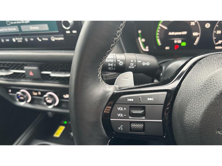 At the heart of this model is Hondas advanced e:HEV hybrid system, which harmoniously blends a 2.0‑, litre petrol engine with electric motors to deliver smooth, responsive performance alongside impressive fuel economy. The system intelligently selects the most efficient driving mode, whether electric‑, only, hybrid, or petrol‑, driven, ensuring that energy use is optimised without driver intervention. This results in reduced fuel consumption and lower emissions compared with conventional vehicles, making it a cost‑, effective and environmentally friendlier choice for daily commuting, longer journeys, or mixed driving conditions. The continuously variable transmission further enhances the experience by providing seamless acceleration and a relaxed driving feel.