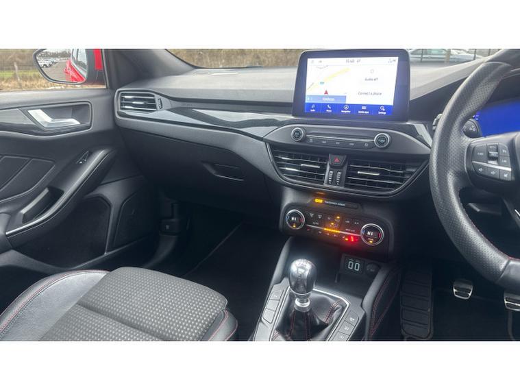 Visually, the Focus stands out with its sporty front grille, sleek LED lighting and distinctive ST Line body styling, complemented by stylish alloy wheels and subtle performance inspired accents. Its compact hatchback form offers a great balance of practicality and agility, with a spacious boot and comfortable rear seating that make it versatile for family use, work trips or weekend adventures. The well tuned suspension and responsive steering deliver confident handling and a rewarding drive, whether navigating urban streets or cruising on open roads.