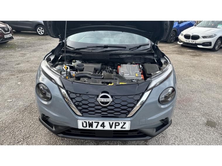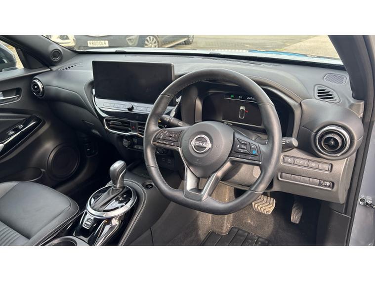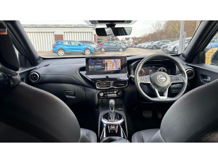 Nissan Juke 1.6 Hybrid Tekna 5dr Auto Hybrid Hatchback, , The Nissan Juke has styling like no other and a decent amount of standard equipment. The Nissan Juke is one of the most divisive cars on the road thanks to its outlandish styling, but underneath the metalwork is a sensible small SUV thats affordable and well equipped. Though for funky looks, the Juke is still king. The swept-back LED strips above massive, round headlights, low roofline and mass of creases along its doors and wheel arches come together in what is one of the most out-there cars on sale. We still cant tell if its handsome, but the Juke is certainly attention grabbing. The cabin isnt as zany as the exterior, with wraparound door cards enveloping the dashboard and a widescreen infotainment display offset above the air vents. Material quality is good, with an Alcantara strip behind the touchscreen elevating things slightly. With most Nissan Jukes set for a lifetime of running around town, its no surprise to learn this is where its best suited. A high-set driving position means youve got a good view of the road ahead, and suitably light steering makes it a breeze to park. With 422 litres to work with in the boot, the Nissan Juke is pretty much par for the course in its class. For context, a VW T-Cross takes the cake with 455 litres, while the Renault Captur matches the Juke. A Skoda Kamiq offers less than all of these at 400 litres. You need the load floor in its higher position if you want it to be level with the 60-40 split-and-fold rear seats when they are tipped forward. With this done, the Juke has up to 1, 305 litres of load capacity, which is among the best among its peers. All versions of the Juke are equipped with a 12.3-inch touchscreen infotainment system. This is a big improvement on the setup previously fitted to the Juke - it's clear, bright and responsive, though certain aspects of the interface are easy to use. It does come equipped with Android Auto and Apple CarPlay - allowing you to seamlessly run your phone apps through the screen.
