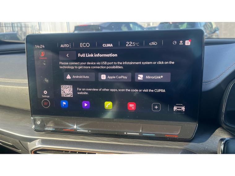 CUPRA Formentor 1.4 eHybrid 204 V1 5dr DSG Estate, , This 2024 CUPRA Formentor eHybrid V1 is a superb example, having had only one owner since new. This striking plug in hybrid model boasts a 1.4 litre petrol engine and meets Euro 6 emission standards. It comes equipped with Kessy keyless entry and start, allowing for effortless access and ignition. The V1 trim also features automatic headlights with a coming and leaving home function, alongside distinctive daytime running lights. For your convenience, a wireless phone charger is integrated, and the cabin offers three zone climate control with a dedicated panel for rear passengers. Parking is made simpler with rear parking sensors.