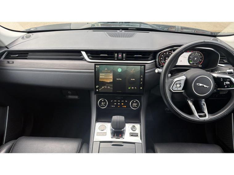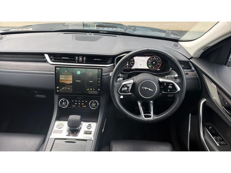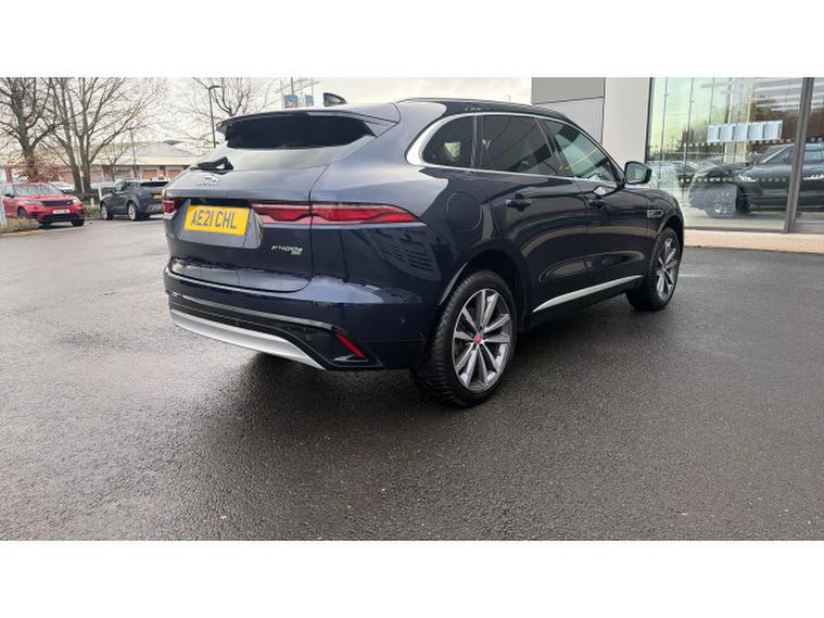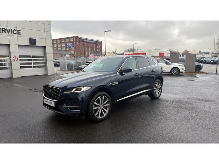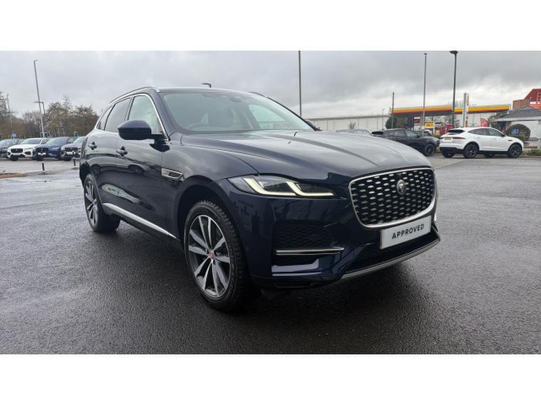 Jaguar F-Pace 2.0 P400e SE 5dr Auto AWD Estate, , Vertu JLR Bolton are proud to offer this stunning Jaguar F-Pace P400e SE finished in Portofino Blue with ebony taurus leather interior. This two owner car has been immaculately looked after by its former owners and comes with a Full Service History with 3 former services last serviced January 2026 at 37462 miles. This car comes with optional privacy glass, jaguar drive control with adaptive surface response, secure tracker pro (subscription required). Standard features include 20 alloys, heated steering wheel, heated leather seats, 11.4 inch touchscreen with Pivi pro Navigation, 3D reverse camera, parking sensors, Apple car play, cruise control, dual zone climate control, blind spot assist, keyless entry, power tailgate, Premium LED headlights with signature day running lights, auto lights and wipers, trip computer, Isofix, steering wheel audio controls, Bluetooth, DAB radio, and much more. This car is ready to view, test drive and drive away today and comes as part of the Approved JLR programme which includes 12 months warranty, 12 months roadside assistance, MOT test warranty and 165 multi point inspection as part of purchase.