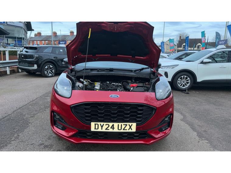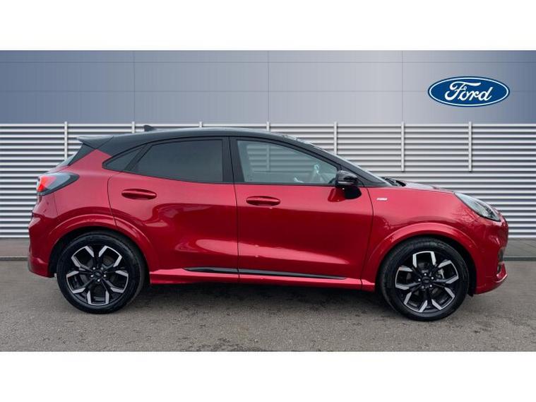 Ford Puma 1.0 EcoBoost Hybrid mHEV ST-Line X 5dr Petrol Hatchback, , Turn heads wherever you go with this striking Ford Puma Hatchback 1.0 EcoBoost Hybrid mHEV ST-Line X 5dr in Fantastic Red Metallic. Combining sporty styling with cutting-edge efficiency, this Puma is the ultimate compact crossover for drivers who want style, practicality, and economy in one irresistible package. Its bold exterior, sculpted lines, and signature ST-Line touches make a commanding impression, while the aerodynamic design contributes to outstanding fuel efficiencyproving that style and smart engineering can coexist beautifully.