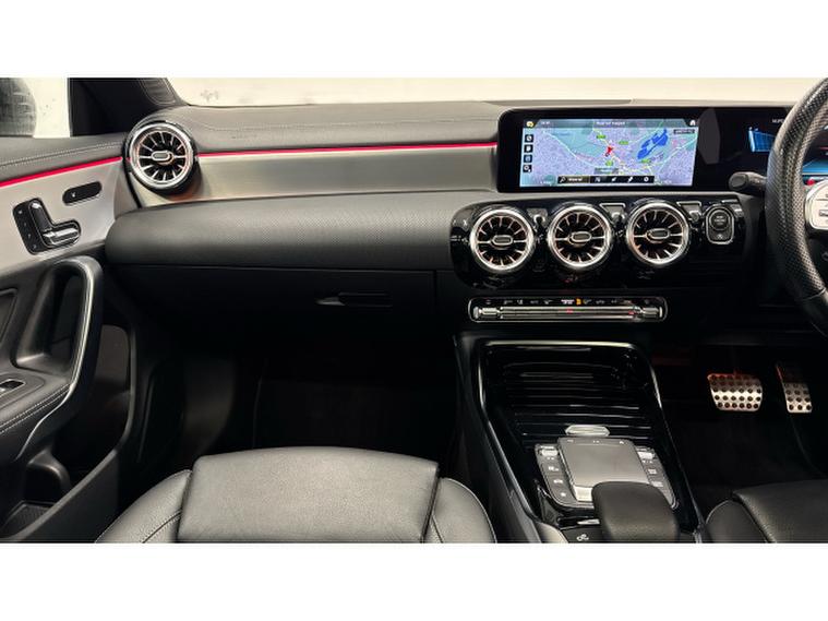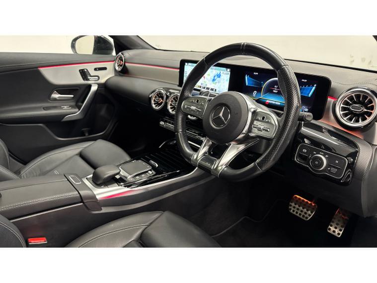 2023 Mercedes Benz CLA35 AMG (Premium Plus) is a prime example of performance and luxury. PANORAMIC SLIDING GLASS SUNROOF, giving you light and airy cabin, once inside using KEYLESS GO giving you access without the use of a key and once inside you are greeted by these comfortable BLACK LEATHER seats which are HEATED SEATS. MBUX SAT NAV Screen is ideal for displaying ANDRIOD AUTO/APPLE CAR PLAY so that you can display your favourite apps like SPOTIFY. REVERSING CAMERA with PARKING PACK is ideal for getting into this tight spaces. Finished in DIGITAL WHITE metallic paint with 19" AMG ALLOYS gives this CLA curb appeal.