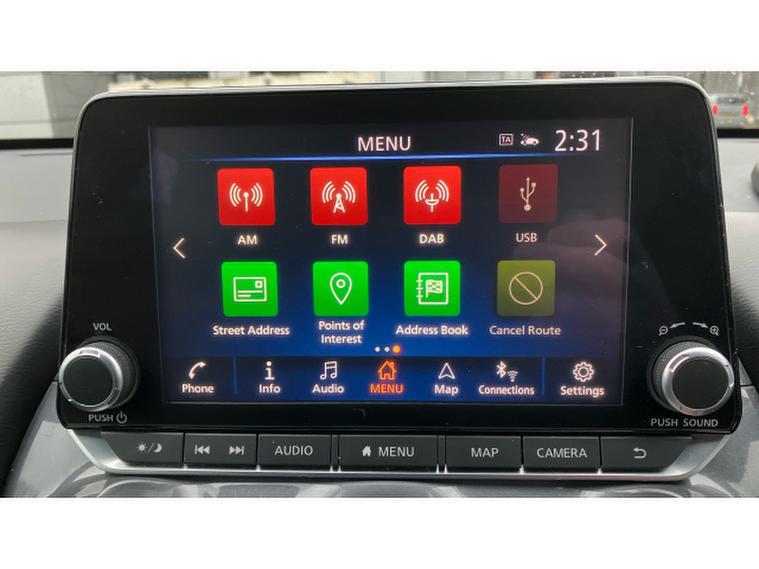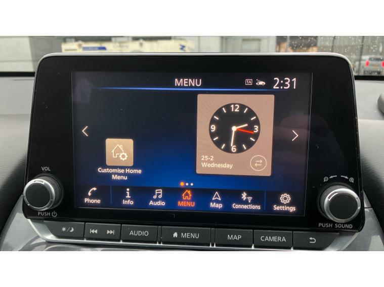 Safety is a key strength, with advanced Nissan driver assistance systems including intelligent emergency braking with pedestrian and cyclist recognition, lane departure warning, blind spot intervention, rear cross traffic alert and traffic sign recognition. Multiple airbags, ABS and electronic stability control provide added reassurance for driver and passengers alike.